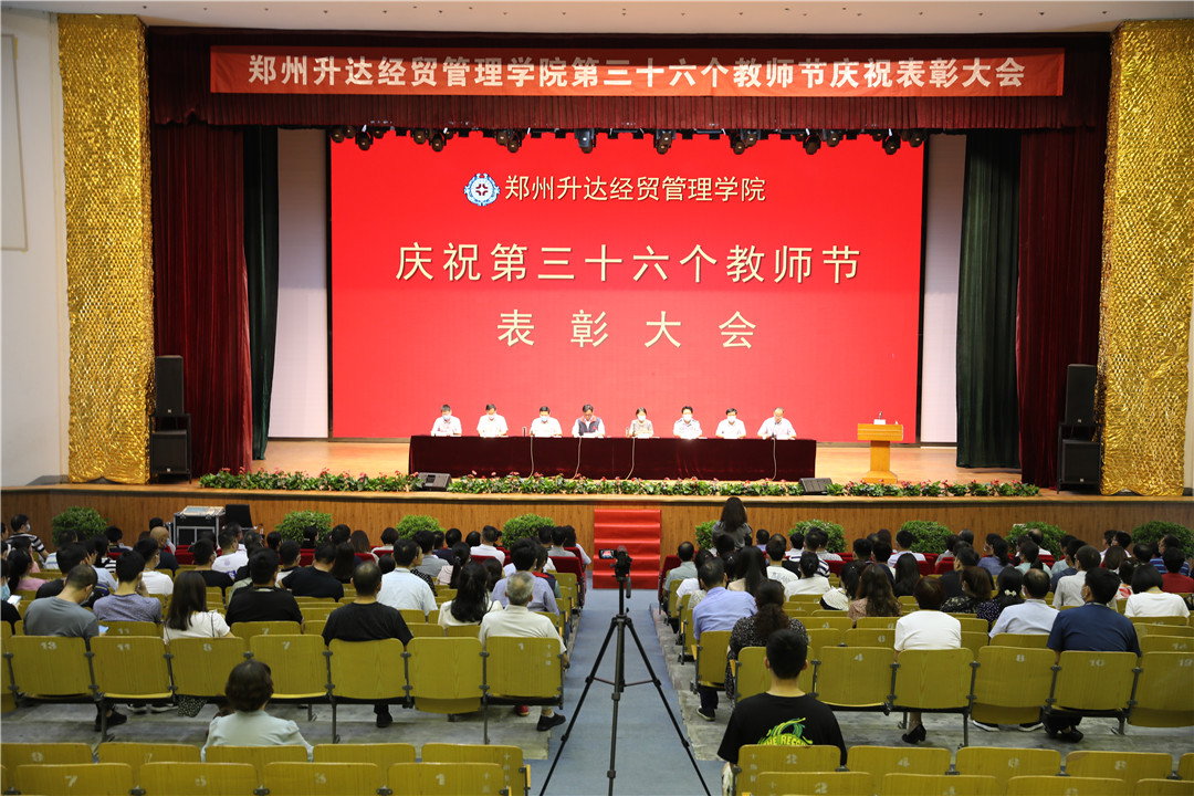 金秋升达,硕果芬芳,满园馨香。9月10日下午,为了庆祝第36个教师节的到来,在全校进一步营造学习先进、争当先进的良好氛围,激励广大教职工的工作热情,推动教育教学工作健康快速发展,我校在思源会馆隆重召开教师节庆祝表彰大会。我校执行董事王新奇、校长郭爱先、校党委书记张德伟、副校长兼工会主席张金安、副校长兼教务长吴益民、副校长兼总务长张其武出席会议。莅校嘉宾郑州铁路公安处政委井振波、特派员刘培庆应邀出席会议。各部处室主管、各二级学院院长、各党总支书记及教职工代表参加会议。大会由校长办公室主任朱永恒主持。