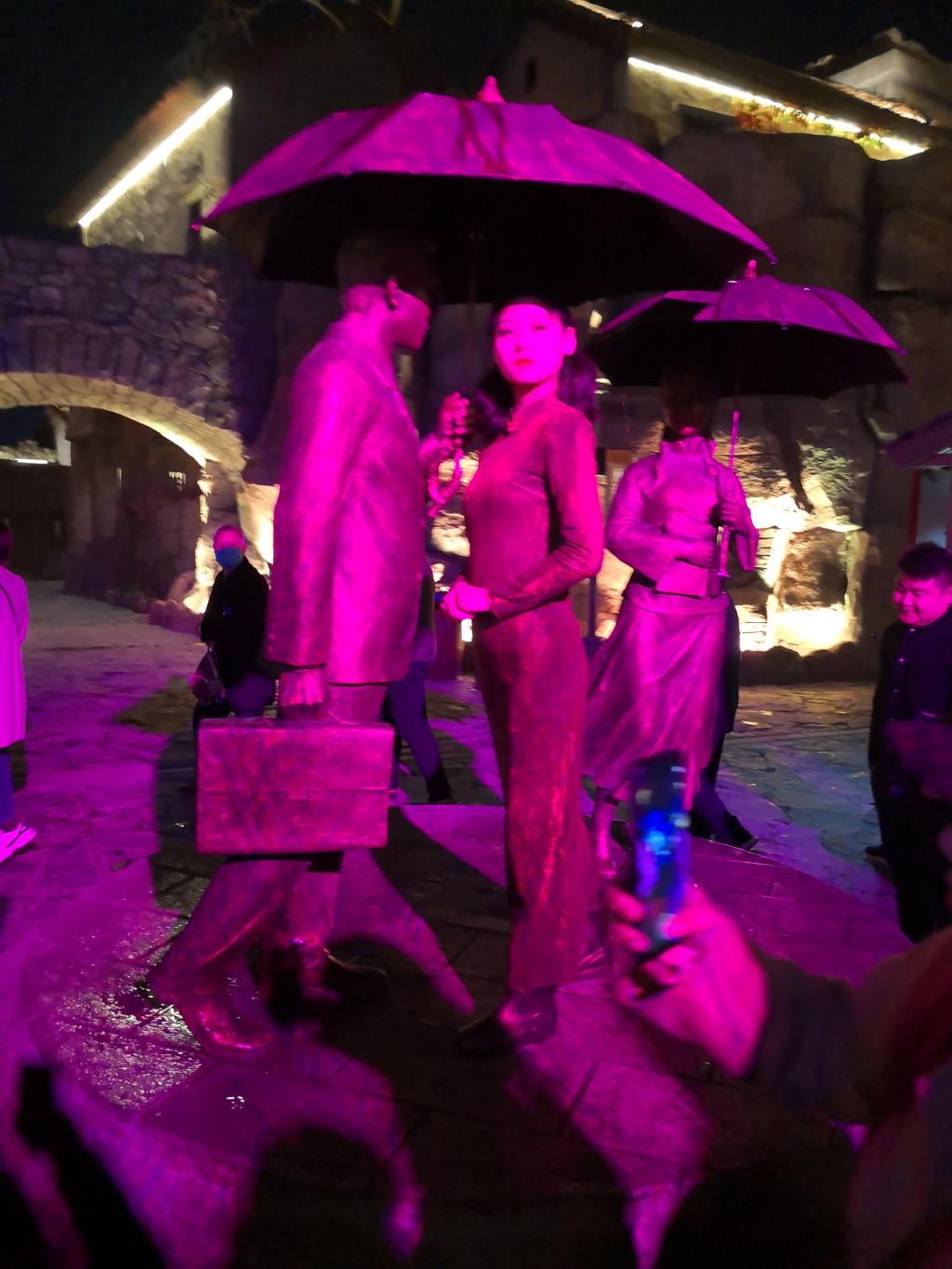 电影小镇,夜色降临,一路有戏伴随大家共谱华章。台下美食不断、台上好戏不停,晚上七时许,大型真人实景表演《战太极》震撼上演,大家跟随演出步伐,全场景沉浸与演员同频共振,亲身感受到了发生在陈氏太极拳发源地河南焦作温县的英雄儿女情仇故事,尝试留住中原文化传承的印记,以光影的魔法和持续迭代的演艺打造全新的文旅体验。