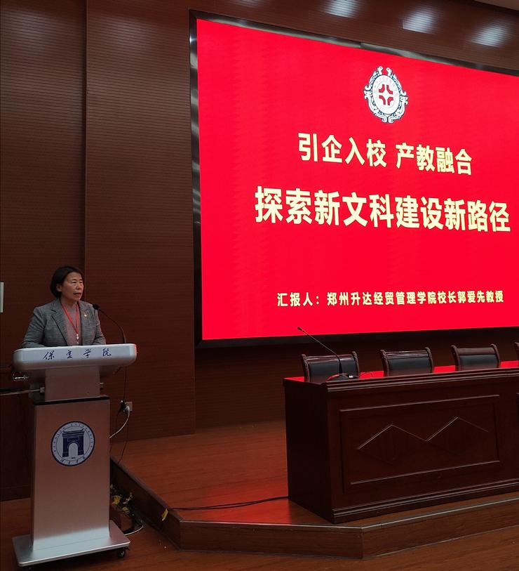 会议上,郭爱先校长作了题为《引企入校、产教融合、探索新文科建设新路径》的主题报告。报告首先介绍了我校的办学情况、办学特色和办学成效;随后,介绍了我校通过转型发展的建设实践,验证了筑巢引凤、引企入校,是民办文科高校实现产教融合、政校企三方合作育人、进行新文科建设的有效路径。最后,介绍了我校取得的部分建设成果。整个报告清晰简洁,通过重点介绍我校在引企入校、产教融合方面的主要思路和经验做法,为推进新文科建设作出了有益的尝试,受到与会领导和专家的一致好评。