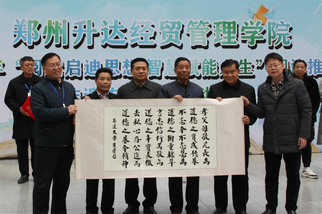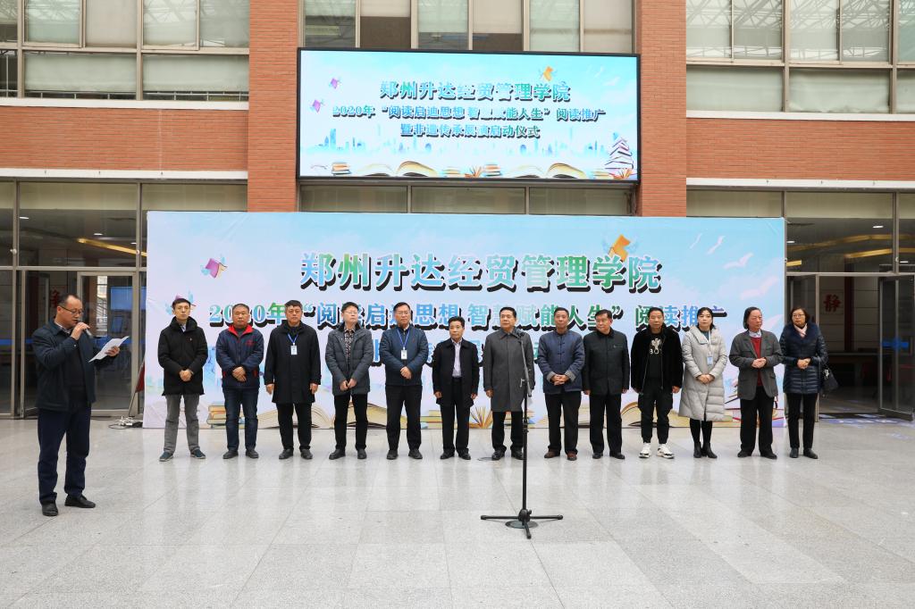 12月3日下午,以“阅读启迪思想 智慧赋能人生”为主题的升达学院2020年阅读推广暨非遗传承展演进高校活动启动仪式在图书馆中厅隆重举行。学校党委书记张德伟同志、张金安副校长、吴益民副校长、张其武副校长、校长办公室朱永恒主任、党委办公室秦旻主任、党委宣传部职正路部长、图书馆晁国立馆长、校团委李松涛副书记等出席,特邀嘉宾河南省纪检监察委员会原纪检处燕文青处长、河南省非物质文化遗产委员会手工艺品委员会会长、郑州市工艺美术大师陈振强先生、河南新永源电子科技有限公司李海霞副总经理莅临参加启动仪式,河南电视台《新农村》频道杨春旺主任、河南电视台《出彩河南》记者方子熠和邓稼轩,国际在线石光明主任,河南科技报社资深记者王四典先生等嘉宾以及师生代表200余人参加了本次活动。仪式由校办主任朱永恒主持。