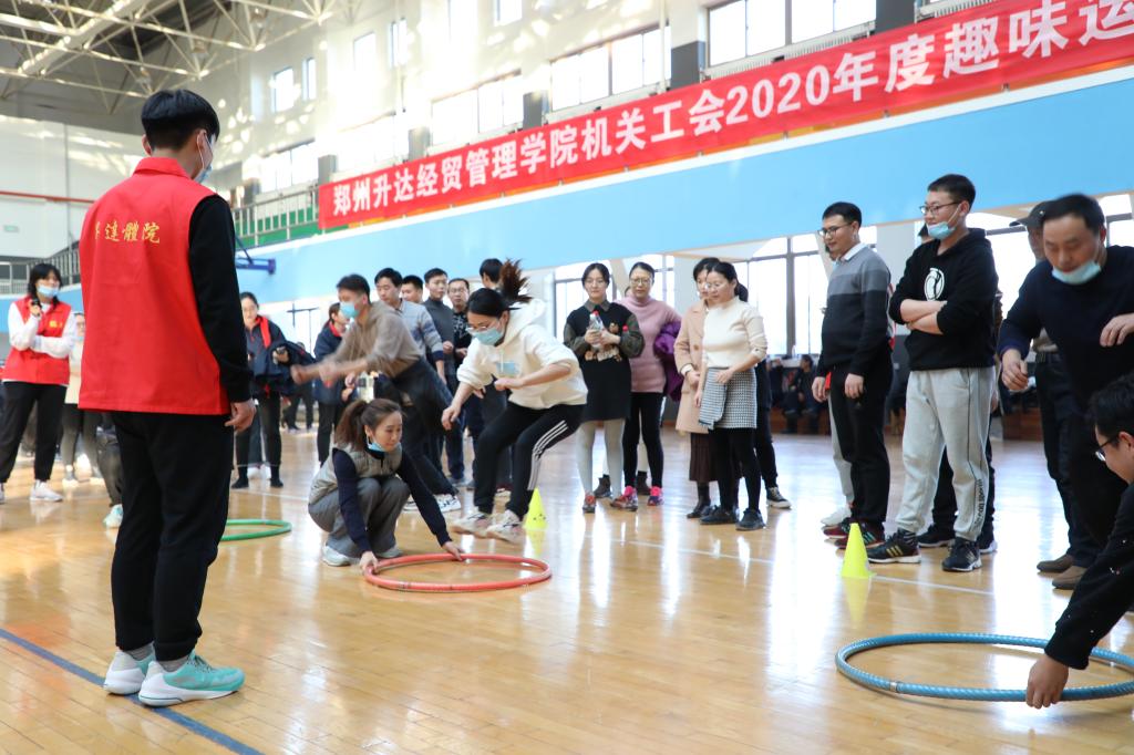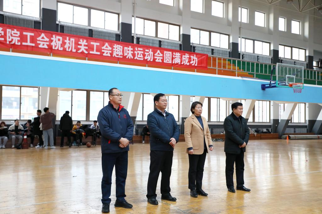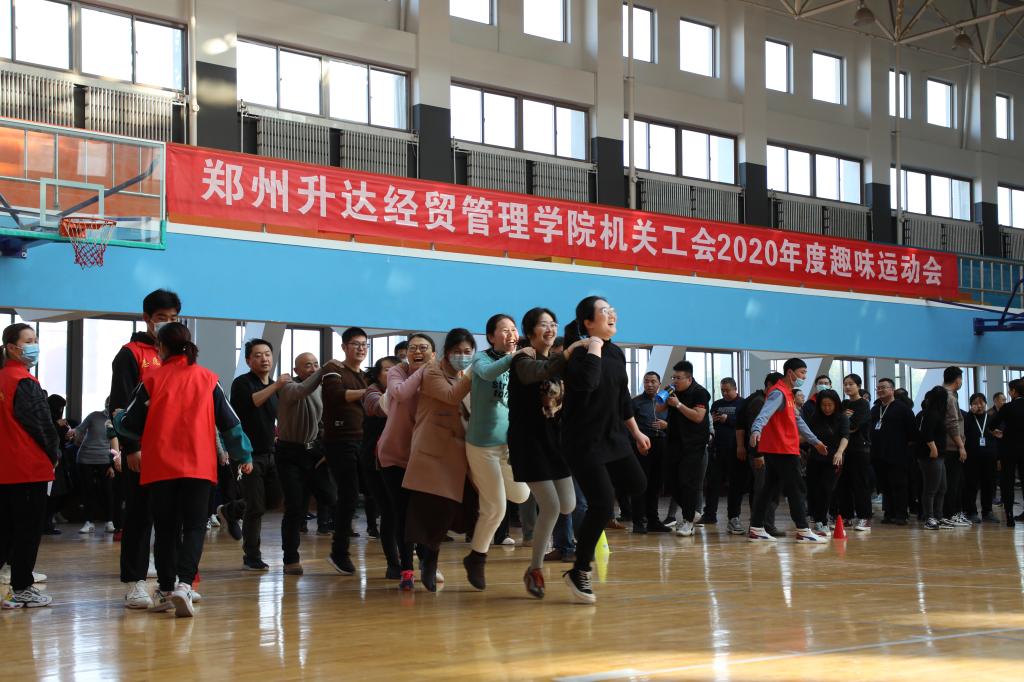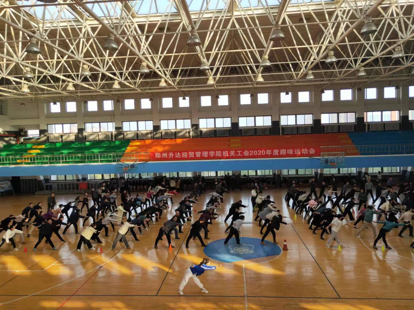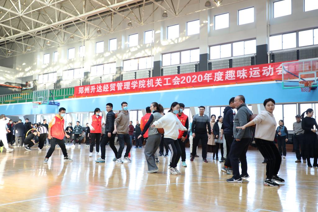 为培养教职工团结协作、顽强拼搏精神,当好主人翁 建功新时代,不断增强教职工的工作积极性和凝聚力,营造积极向上,团结奋进校园文化氛围。2020年12月10日下午,机关工会积极响应校工会号召,组织十个工会小组近300人次在体育馆篮球厅成功举办了机关工会2020年度趣味运动会,校长郭爱先、副校长兼工会主席张金安、副校长兼教务长吴益民亲临运动会现场,部分职能部门主管参与了本次趣味运动会。