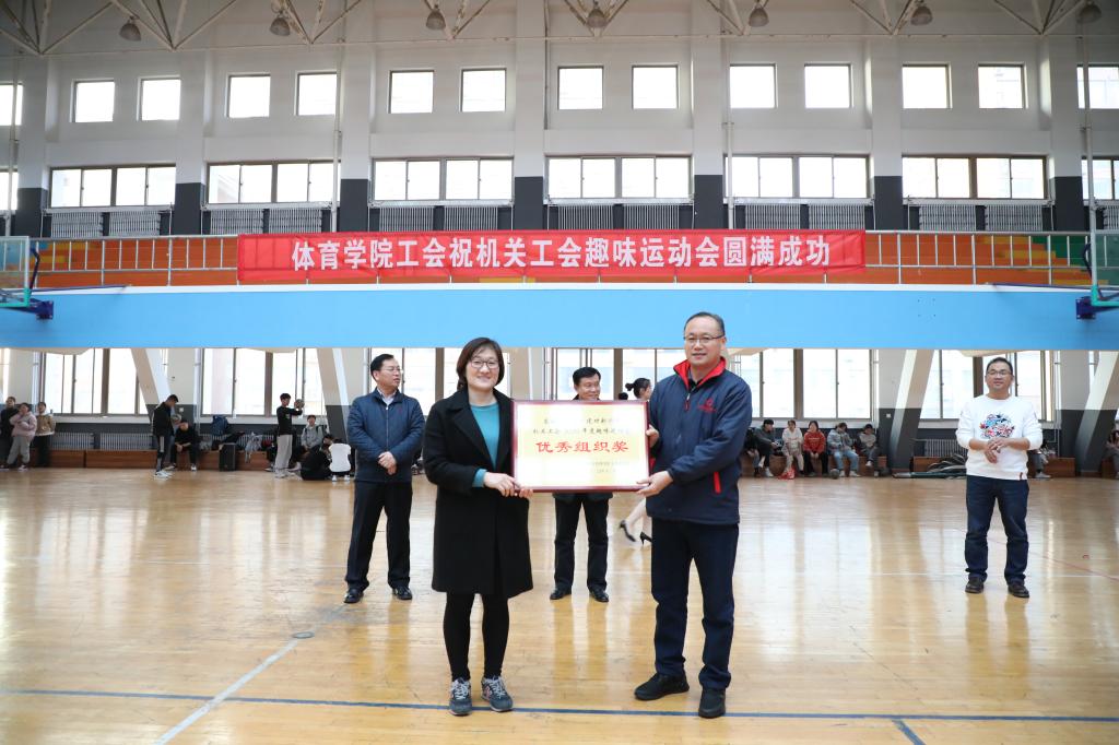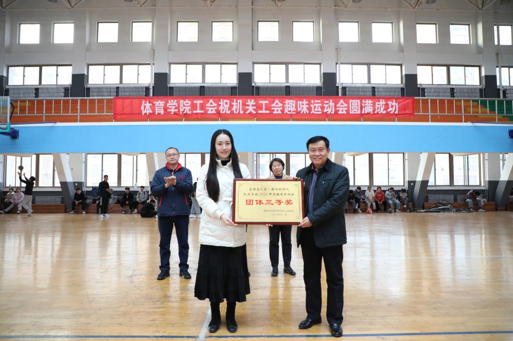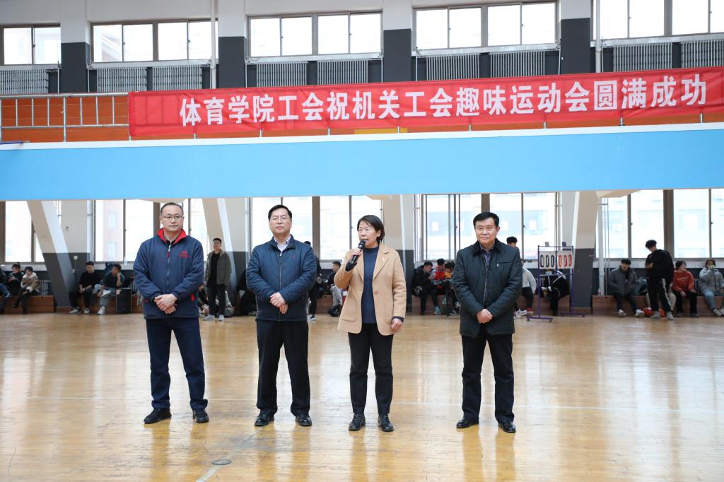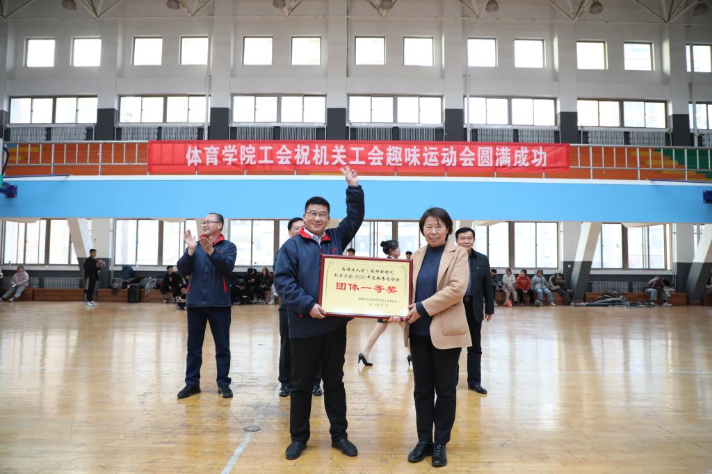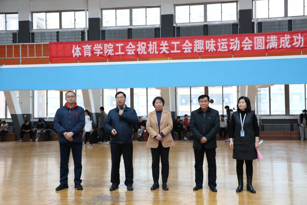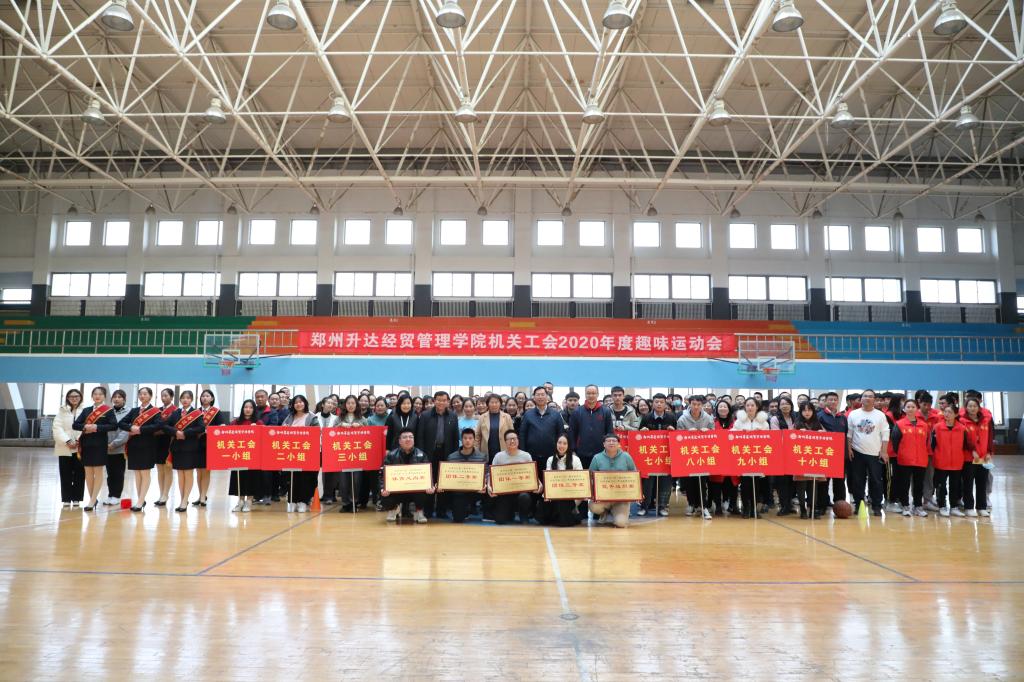 为培养教职工团结协作、顽强拼搏精神,当好主人翁 建功新时代,不断增强教职工的工作积极性和凝聚力,营造积极向上,团结奋进校园文化氛围。2020年12月10日下午,机关工会积极响应校工会号召,组织十个工会小组近300人次在体育馆篮球厅成功举办了机关工会2020年度趣味运动会,校长郭爱先、副校长兼工会主席张金安、副校长兼教务长吴益民亲临运动会现场,部分职能部门主管参与了本次趣味运动会。
