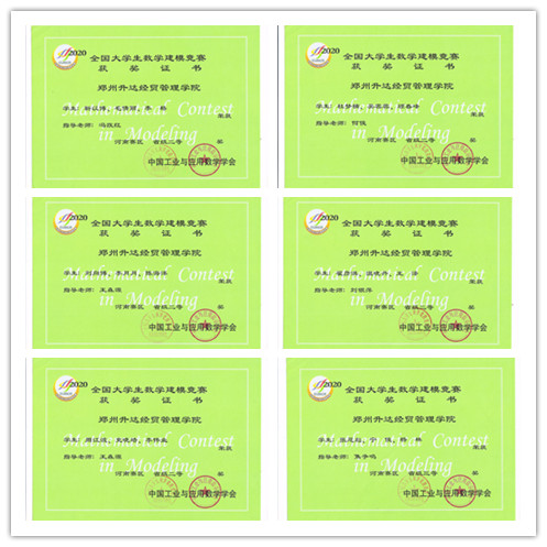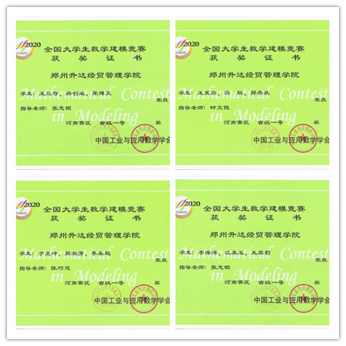 2020年全国大学生数学建模竞赛成绩近日揭晓,我校共组织28支队伍,84学生参赛,其中24支队伍获奖,分别获得河南省“省级一等奖”7组,“省级二等奖”5组,“省级三等奖”12组。