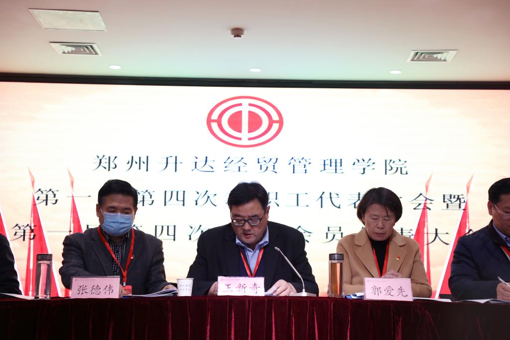 2020年12月24日,我校第一届第四次教职工代表大会暨第一届第四次工会会员代表大会在我校综合实训楼双创大讲堂隆重举行。执行董事王新奇、党委书记张德伟、校长郭爱先、副校长兼工会主席张金安、副校长张其武等校领导出席大会,大会主席团成员及128名代表参加会议。大会由副校长张其武主持。