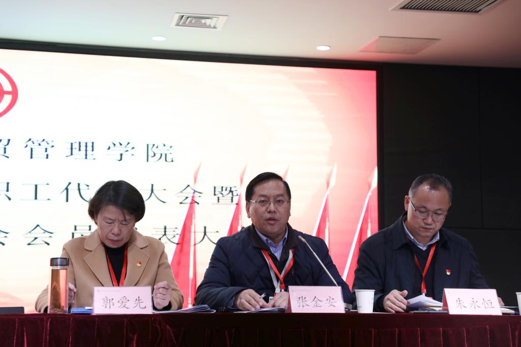 副校长兼工会主席张金安作《当好主人翁 建功新时代 团结动员全校教职工为建设特色鲜明国内知名的高水平应用型民办大学努力奋斗》的报告。报告详细总结了2020年工会所做的工作,并对2021年的工作进行了科学规划。他号召广大教职工团结凝聚力量,高举中国特色社会主义伟大旗帜,以习近平新时代中国特色社会主义思想为指引,在校党委和上级工会组织的领导下,充分发挥工会组织的桥梁纽带作用,充分发挥工会会员的主动性、创造性,不忘初衷,牢记使命,努力开创新时代我校工会工作的新局面,为学校特色发展和高质量发展做出新贡献!