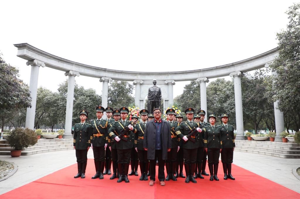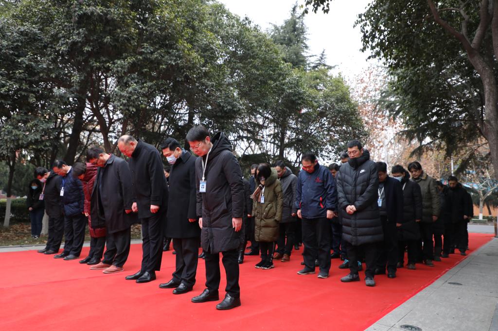 9时许,敬献鲜花仪式开始。全体成员,身穿着深色服装,冒着严寒和凛冽的冬风,排着整齐的队伍伫立在广场上。大家怀着无比崇敬的心情来到创办人像前,向创办人像默哀并行三鞠躬礼,表达对创办人的深切怀念和感恩之情。