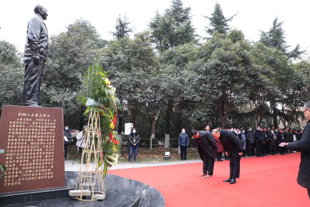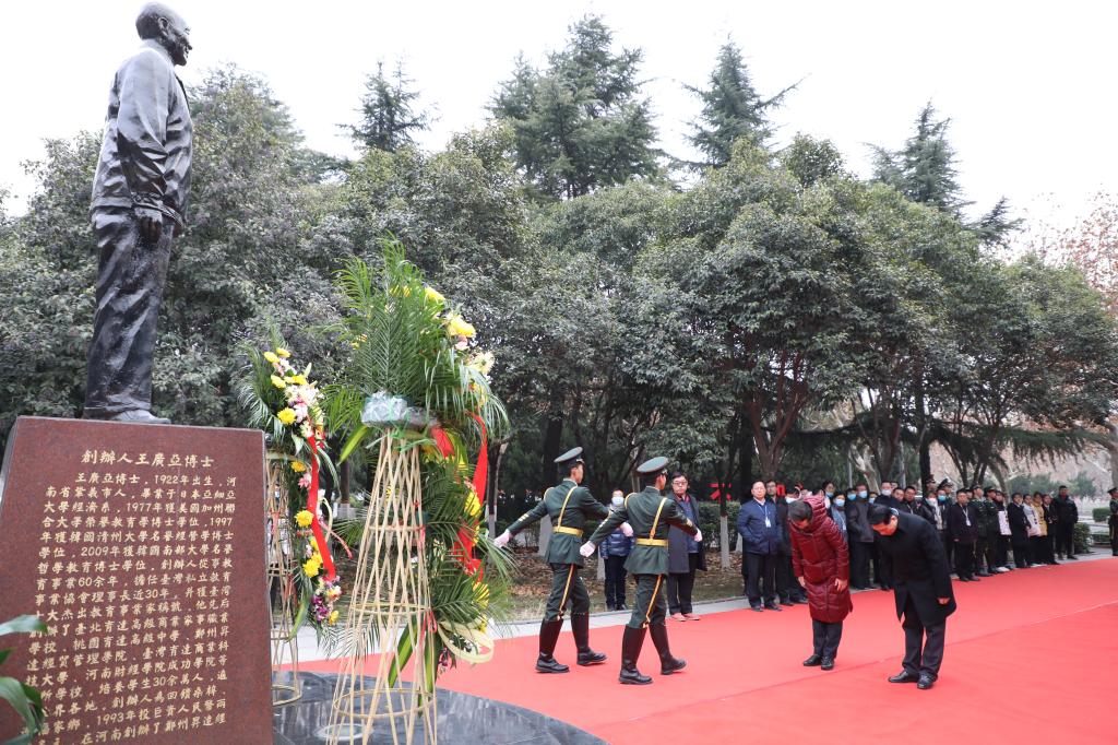 谆谆教诲终难忘,句句箴言永流传。2020年12月29日是我校创办人、豫籍台湾著名教育家王广亚博士逝世5周年纪念日。是日上午,我校在建校纪念碑广场举行纪念创办人王广亚博士逝世5周年献花仪式。参加献花仪式的有:学校领导班子全体成员、全体主管、国旗班同学以及学生代表。仪式由校办主任朱永恒主持。