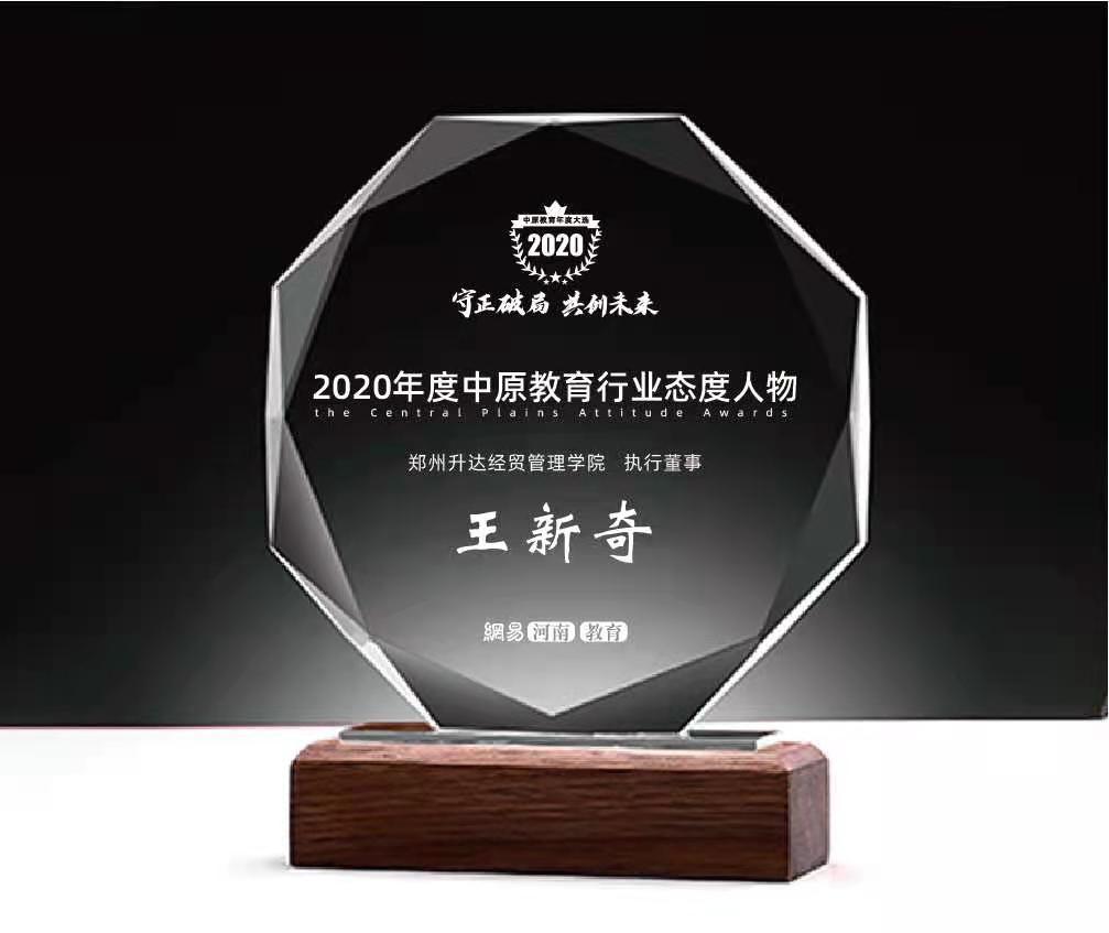 2020年12月,网易新闻授予我校“2020年度中原综合实力民办高校”荣誉称号,并授予执行董事王新奇博士“2020年度中原教育行业态度人物”荣誉称号。