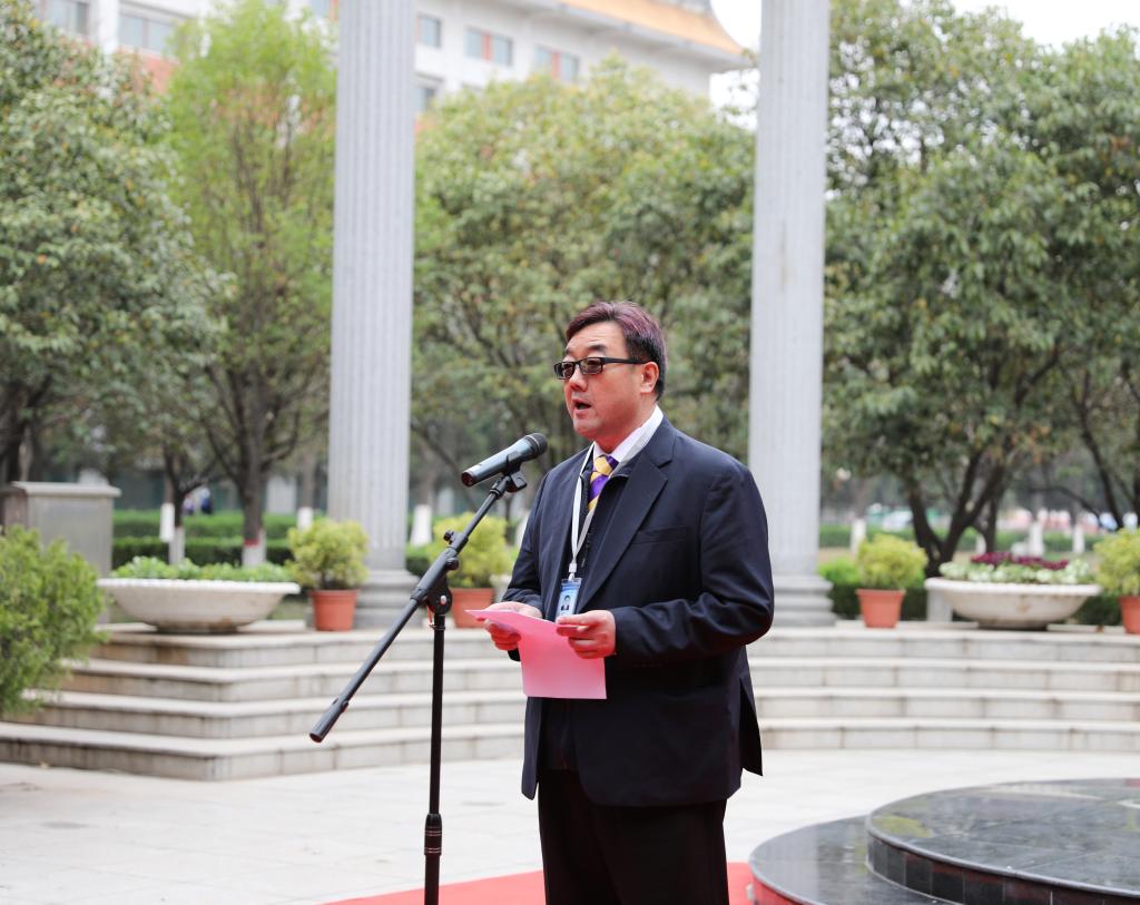执行董事王新奇致辞,他首先代表董事长向出席此次献花仪式的各位领导、校友、师生表达感谢;深切缅怀了创办人毕生献身教育事业,服务社会、报效国家,勤俭朴实、躬耕杏坛,倾资兴学、情系桑梓的人生历程;表达了把对创办人的无限思念,转化成奋斗的动力,继承创办人的遗志,弘扬创办人的理念,在王淑芳董事长的领导下,努力做好本职工作,齐心协力,改革创新,把学校办的越来越好的决心。