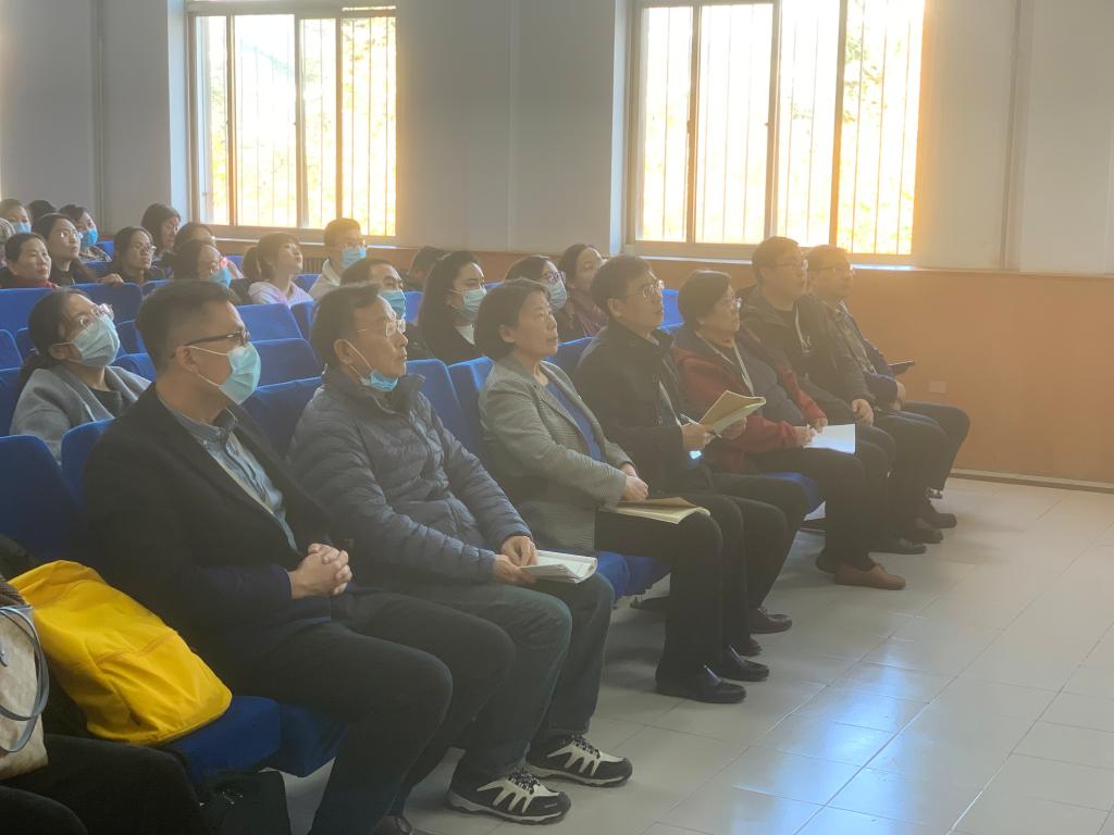最后,校长郭爱先讲话。她对参加本次教研活动表示非常高兴,在看完两位教师分享的精彩报告后,她对基础部在促进青年教师成长、混合式课程建设等方面发挥的积极作用表示了充分肯定,对教师们在大学英语教学中所做的努力与贡献表达了衷心感谢。郭爱先强调,高等教育进入普及化阶段,本科教育已成为“基础”教育,越来越多的学生希望继续考研深造,大学英语课程对学生四六级通过率和考研成功率都有着至关重要的作用。基础部的教师们使命光荣、责任重大,希望教师的专业水平提升要落实在学生成长成才上,要积极培养学生学习英语的兴趣,充分调动学生的学习主动性,使他们由“要我学” 转变为“我要学” ;要对学生实施分层次教学,真正提高学生的英语学习效率;要积极开发知识性的线上讲座,为学生提供更多学习资源,提升学生的英语水平和英语运用能力,为学生成为更好的自己、有更好的未来做足准备、做好服务。