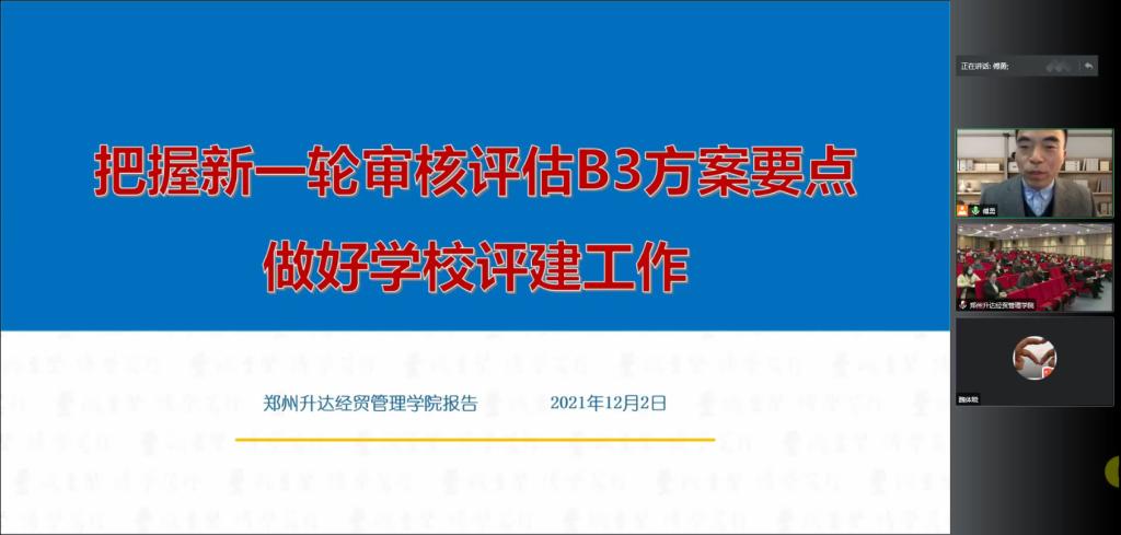 为迎接即将到来的教育教学审核评估,更好把握第二类第三种参评学校对应评估指标,12月2日下午,学校特邀安徽大学傅勇教授作题为《把握新一轮审核评估B3方案要点,做好学校评建工作》的专题报告。受疫情影响,此次报告采用线上直播形式进行。各单位科级及以上干部,各院(部)教学秘书、教研室主任、专业负责人,教务处、科研处、教学质量监测与评估中心全体人员,全体督导员在现场聆听了报告。此次报告由副校长吴益民主持。