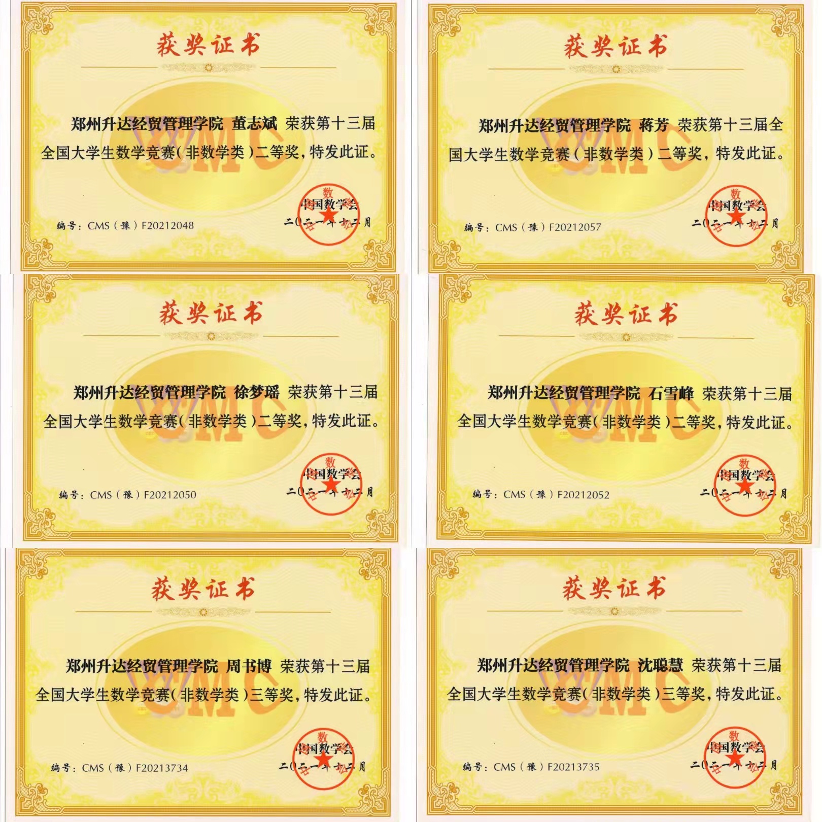 近日,2021年第十三届全国大学生数学竞赛成绩揭晓,我校学生在本次竞赛中喜获佳绩,共50位学生荣获奖项。其中,14名同学获得省级一等奖,14名同学获得省级二等奖,22名同学获得省级三等奖。
