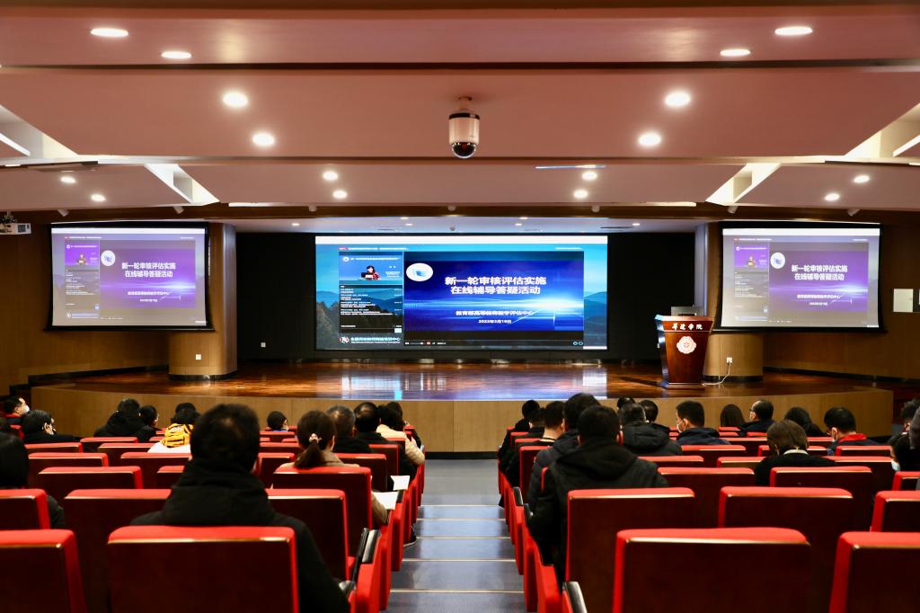 教育部教育督导局评估监测处处长魏欢从国家层面介绍了新一轮审核评估实施政策背景及“十四五”布局安排,重点从审核评估申请和自评两个方面进行了详细讲解;强调要明确审核评估中规范、条件等指标,做好定量审核填报等。他还对评估类型选择、评估对象、评估计划安排、评估专家组等高校关注的问题进行了答疑。