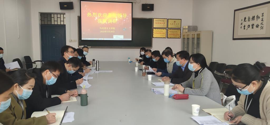 3月29日上午,校党委书记雷霆、副校长吴益民、董事会办公室秘书兼科研处处长杨存博、人事处处长兼教发中心主任王新平等一行赴马克思主义学院调研。马克思主义学院院长王宪政、党总支书记窦峰、教学秘书苗淑娟、教学督导、各教研室主任和教师代表参加调研座谈,座谈会由王新平主持。