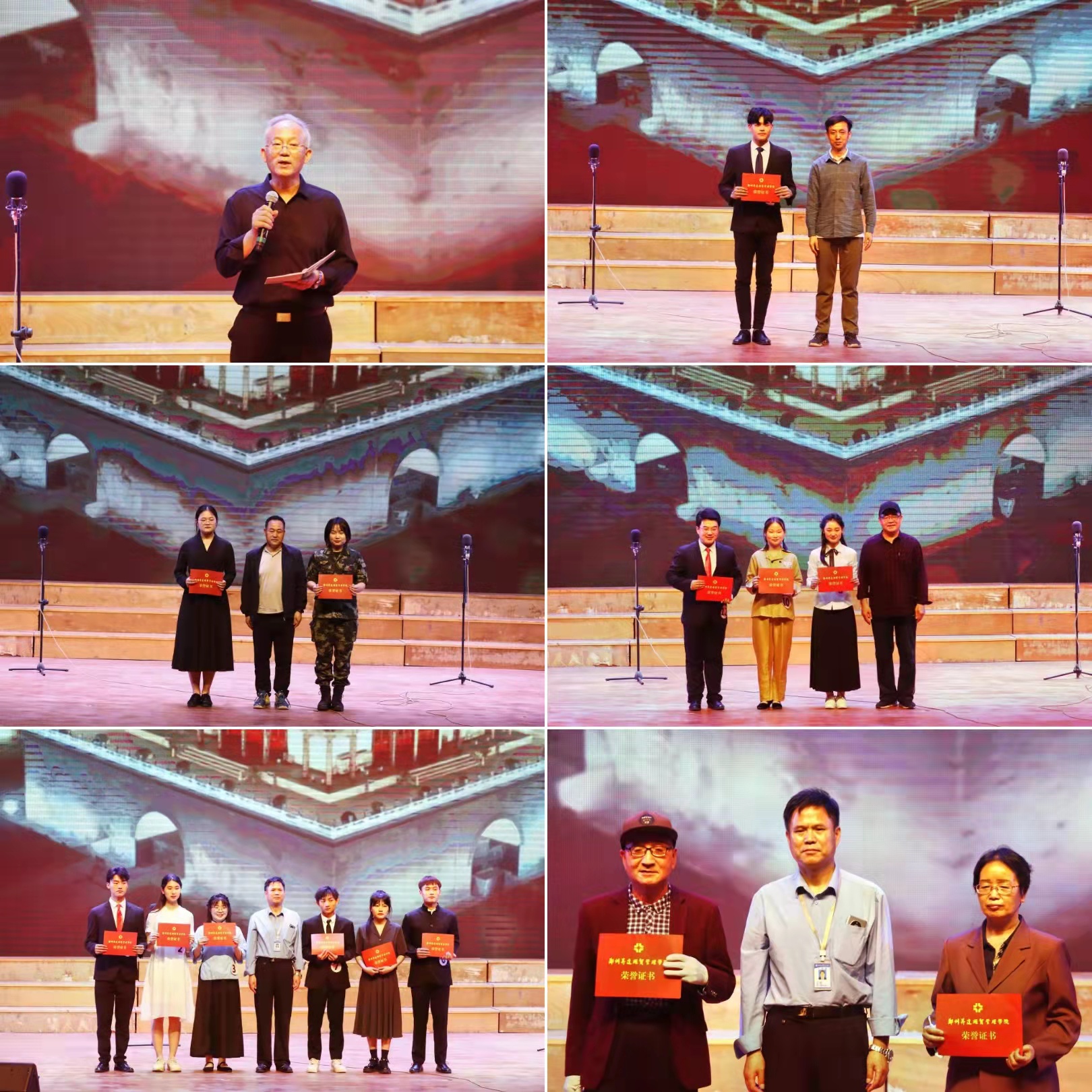 王宪政、窦峰、李松涛、赵建华分别为获奖学生和指导老师颁奖并合影留念。