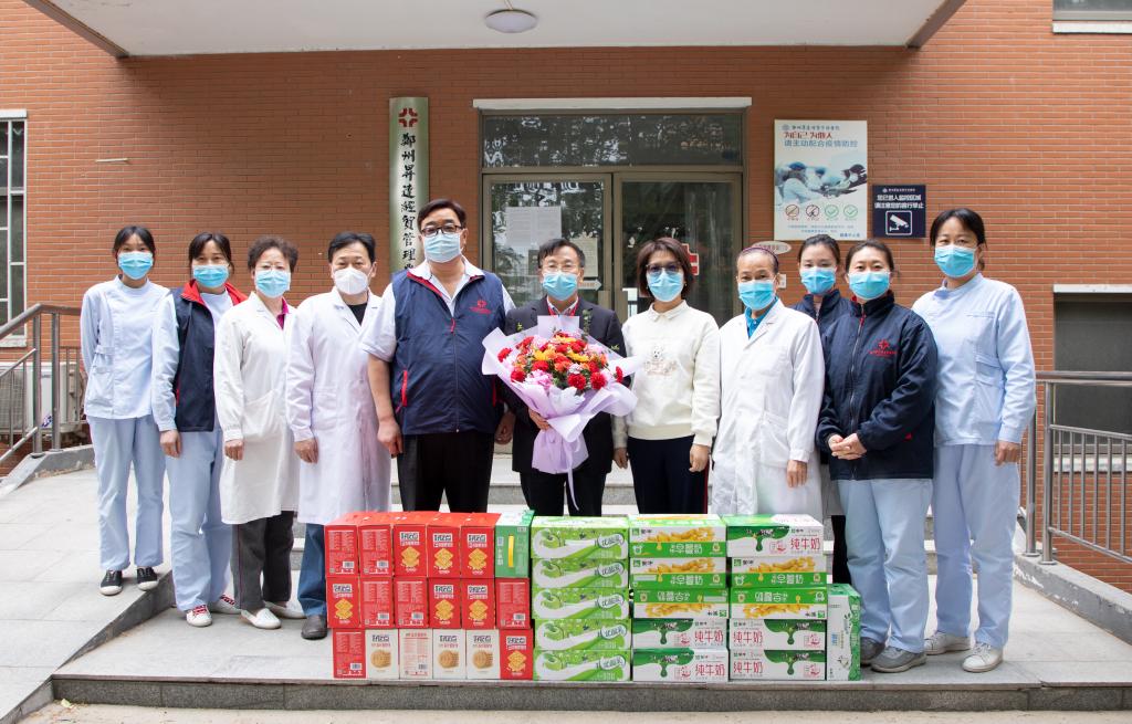 5月8日上午,执行董事王新奇,校长、校党委副书记张欣带队来到校医务室,慰问坚守在一线的医疗专班队伍,并将牛奶、饼干等慰问物资送到他们手中,为他们带来温暖与关怀。