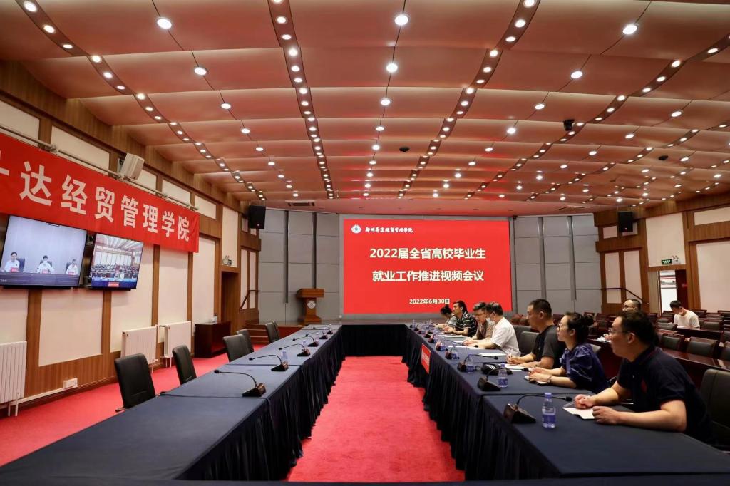 6月30日上午,省教育厅召开2022届全省高校毕业生就业工作推进视频会议。河南省副省长宋争辉、省委教育工委专职委员吕冰出席会议并讲话。我校在行政楼国际会议厅设立分会场,副校长、校党委副书记张金安,就业处处长冯科以及各学院就业工作负责人参加会议。