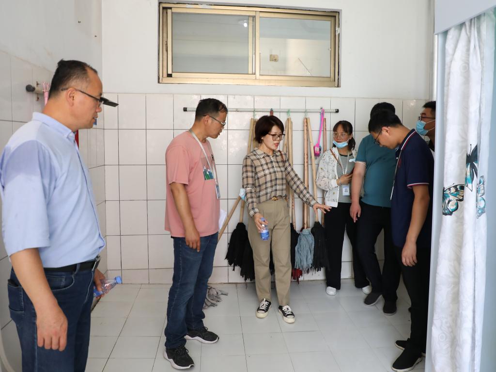张欣、张其武一行实地查看了学生宿舍楼及周边场所,对主体工程的建筑质量、内外部装修、木泥水电、消防设施、门把手、热水装置等进行了全面细致的检查;逐个对宿舍楼房间的安全卫生、组合床柜、地板砖,楼道内的洗漱台、洗浴间、卫生间以及楼顶防水等进行细致查看,逐层逐屋仔细认真进行检查。