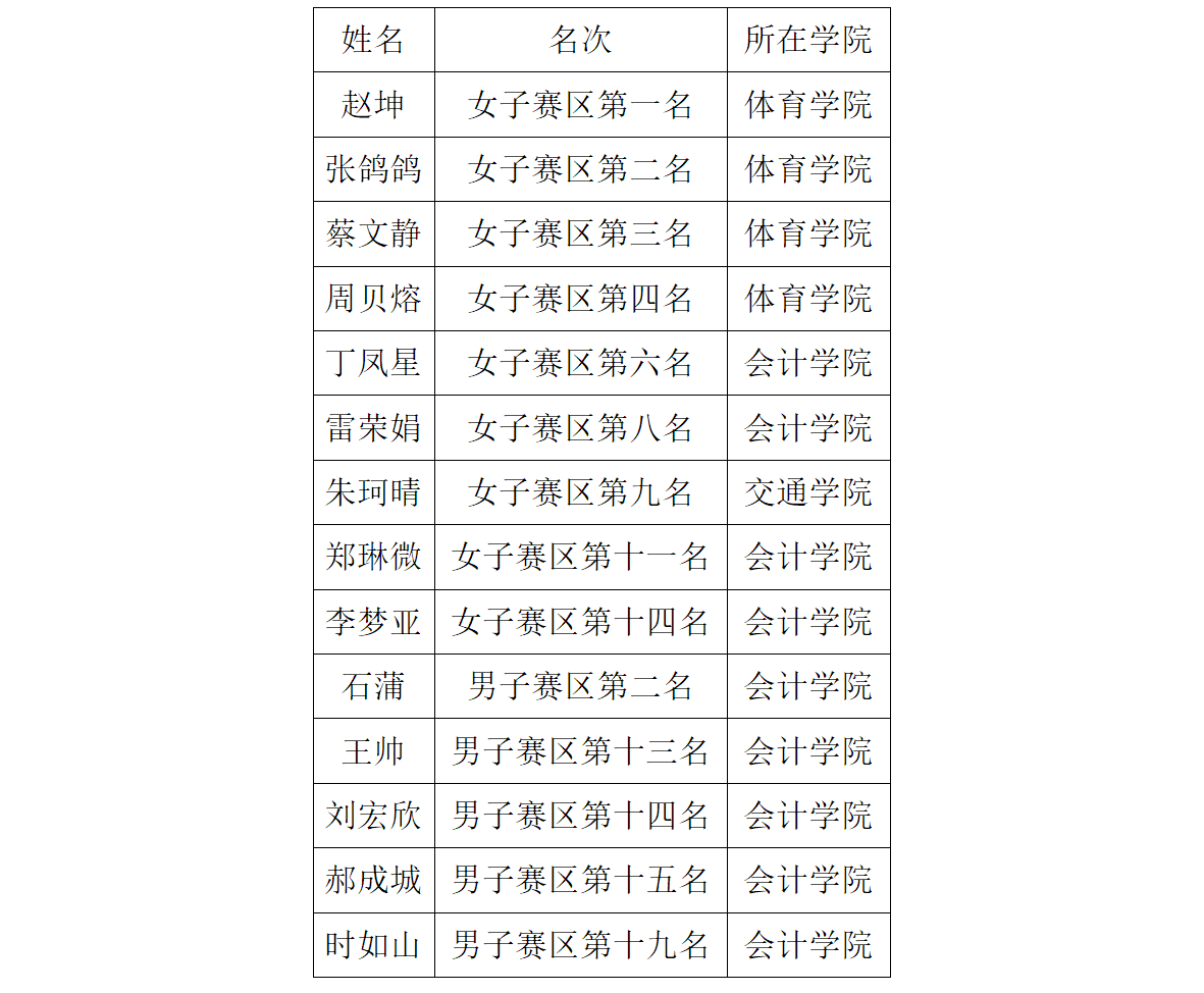 近日,由中国大学生体育协会、阿里体育联合主办的“中国大学生健康校园大赛暨AI体能赛”成绩出炉,我校4名同学包揽女子赛区第一名至第四名,1名同学荣获男子赛区第二名,全校共有14名同学跻身全国20强。