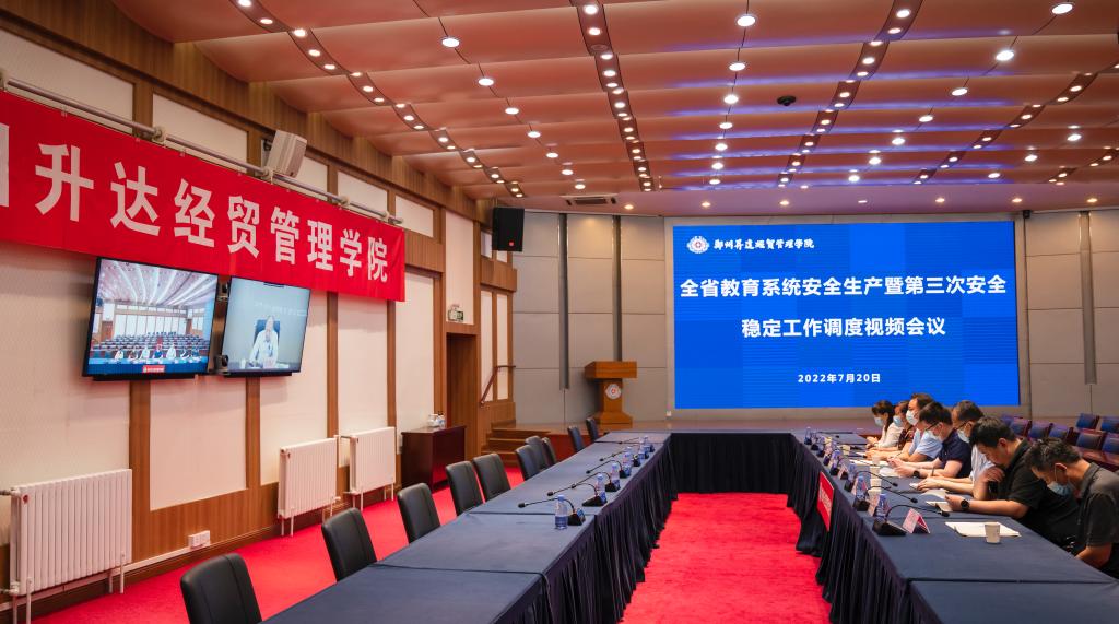 7月20日上午,省教育厅召开安全生产暨第三次安全稳定工作调度室视频会议,我校在行政楼国际会议厅设立分会场,校党委委员、副校长兼总务长张其武,校长办公室主任朱永恒、总务处副处长冯亚飞等相关部门负责人参加会议。