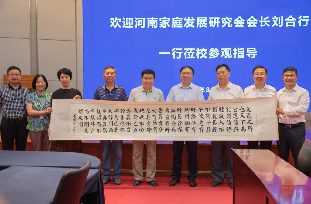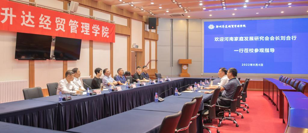 8月4日上午,河南家庭发展研究会会长、河南工贸职业学院书记刘合行一行7人莅临我院参观访问。我校副校长、校党委副书记、工会主席张金安,副校长兼教务长吴益民,董事会办公室主任杨存博,审计处处长李博等在行政楼国际会议厅与莅校贵宾进行了座谈交流。