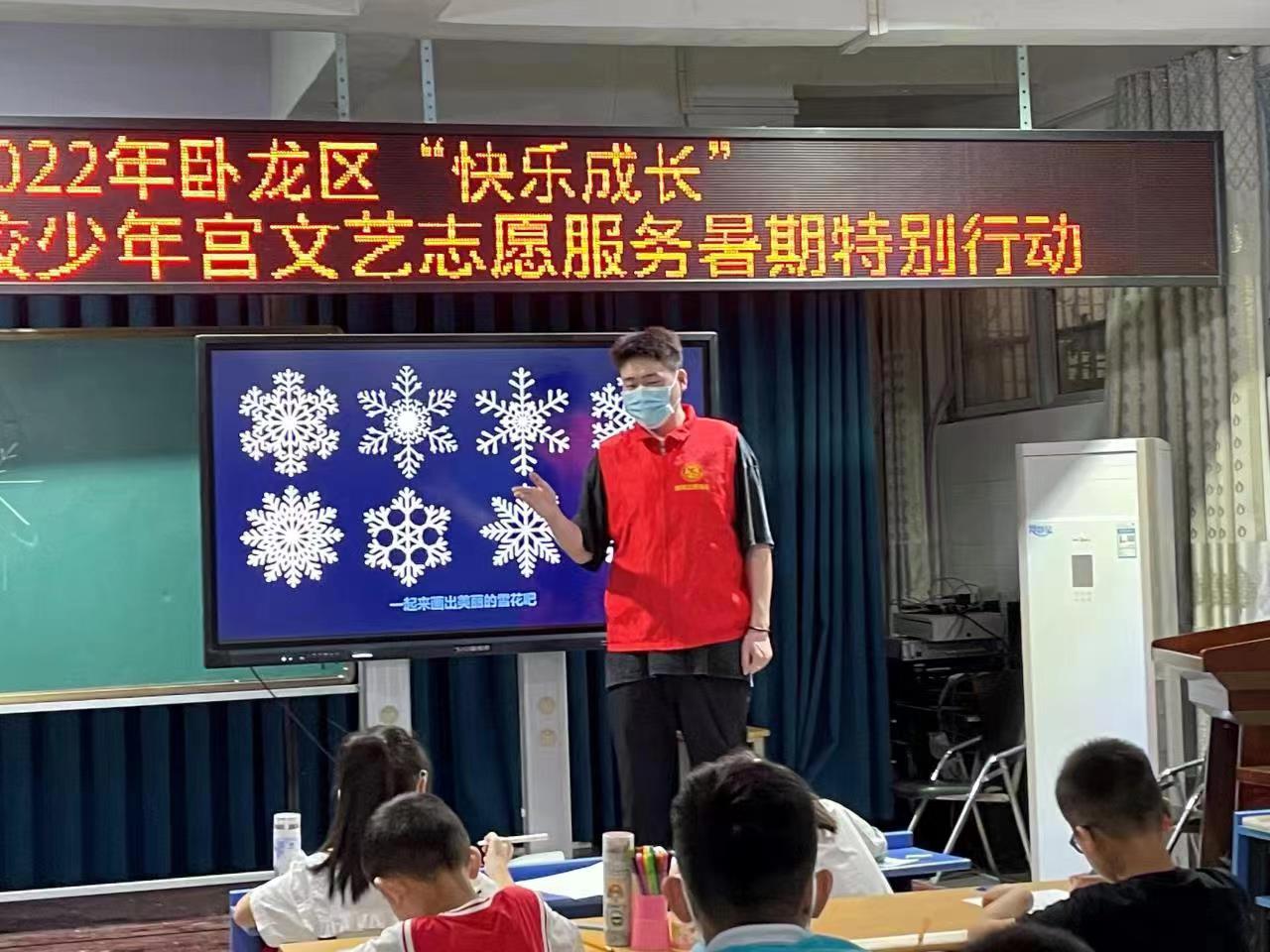 在南阳市卧龙区,2019级环境设计本科3班梅峻豪作为一名学生党员,在暑假期间积极主动向区新时代文明实践中心报到。7月20日早晨,他和另外两名大学生志愿者一起赶赴王村乡中心小学,发挥专业特长为孩子们讲解美术知识和绘画技巧。由于表现突出,梅峻豪同学被南都晨报和南阳文明网采访报道,他表示,在这里感受到了帮助他人的喜悦,会在志愿服务这条路上继续前行,用微小的光传递最暖的情。