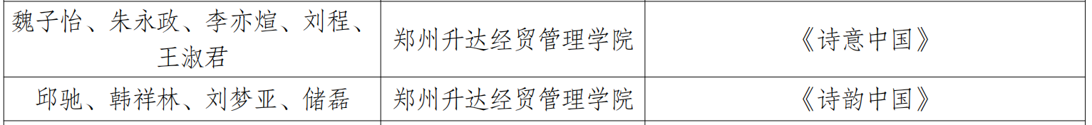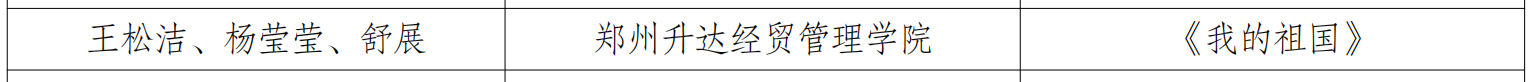 近日,由河南省教育厅主办的第四届中华经典诵写讲大赛经典诵读作品评选结果揭晓,我校教师王佳、王歌的诵读作品《青春万岁》和王松洁、杨莹莹、舒展的诵读作品《我的祖国》分获教师组二等奖、三等奖,学生魏子怡、朱永政、李亦煊、刘程、王淑君的诵读作品《诗意中国》和邱驰、韩祥林、刘梦亚、储磊的诵读作品《诗韵中国》获大学生组三等奖。