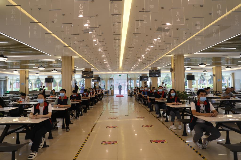 随后,应急演练严格按照秋季学期开学和疫情防控工作要求,分别在学校西大门、学生宿舍13号楼、龙湖食府餐厅、道镕教学楼等处,完整模拟了学生报到入校、入住宿舍、餐厅就餐、教室上课、应急情况处置等场景。参演教职工按照应急演练的路线和要求分工合作、协同配合,有条不紊开展演练,达到了预期效果。