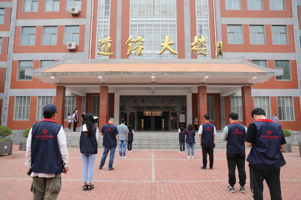 演练前,我校在行政楼前举行演练动员会。张金安强调,要通过实地应急演练,熟练掌握和演示各场景下的疫情防控要求和应急处置流程,进一步检验和提高我校疫情防控工作水平和应对能力,全力做好各项开学准备。
