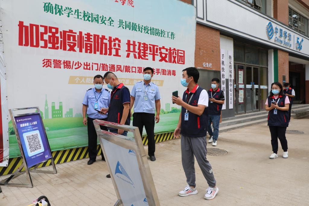 为贯彻落实上级关于疫情防控工作的部署和要求,检验和提高我校疫情防控应急处置能力,8月26日上午,我校疫情防控指挥部举行全校2022年秋季返校开学疫情防控应急演练。党委副书记、副校长、工会主席张金安,副校长兼教务长吴益民,党委委员、副校长兼总务长张其武现场观摩并指导,各疫情防控工作专班负责人及相关工作人员参加演练。