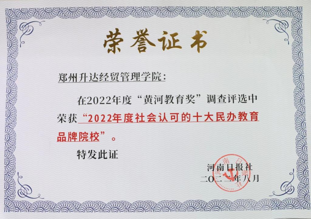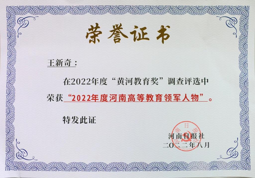 近日,河南省第十三届“黄河教育奖”推选活动传来喜讯,学校执行董事王新奇荣获“河南高等教育领军人物”称号,我校斩获“社会认可的十大民办教育品牌院校”、“河南高校(党建)宣传工作示范单位”等多项荣誉。