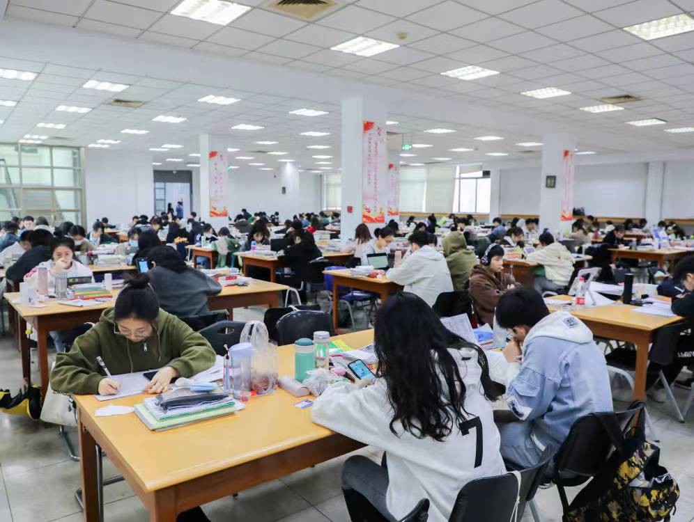国庆七天长假中,学校的图书馆自修室、书望书院流动自习室、各学院考研自习室等处“安安静静”,走近发现不少同学在专心致志地看书或默默背诵,图书馆中厅,不少同学在专心致志地读书或大声背诵,这些如饥似渴的学生中,多为备战研究生、公务员、证照考试而来,也不乏大一阅读爱好者。