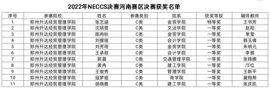 全国大学生英语竞赛决赛(河南赛区)于10月23日如期举行,本次竞赛采用线上考试形式,考生使用ITEST系统答题,监考老师使用腾讯会议进行云监考。我校有11位同学参加了C类(非英语专业本科)的决赛,进入决赛人数再创历史纪录。经过激烈竞争,金融贸易学院2021级金本4班学生张艺涵同学获得特等奖,进入全国总决赛,将代表我校参加来自全国2000多所高校的优秀学子的竞争。