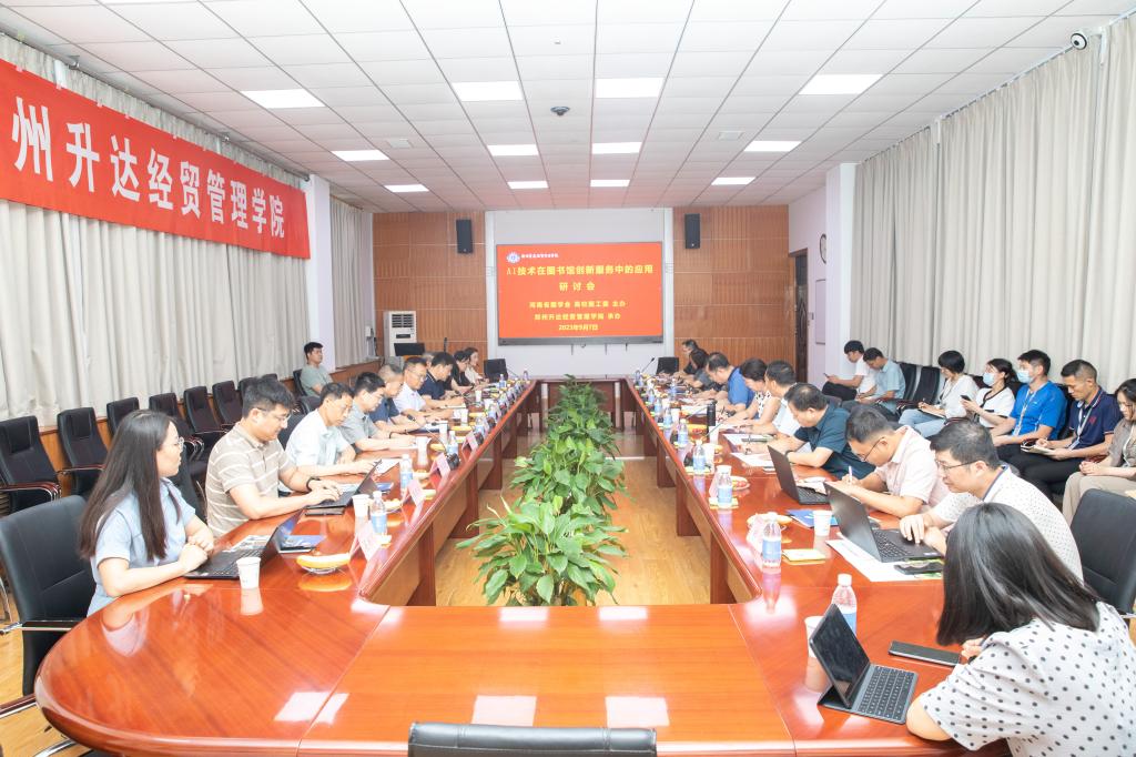 9月7日下午,由河南省图书馆学会、河南省高校图书情报工作委员会主办,我校承办的河南省高校“AI技术在图书馆创新服务的应用”研讨会在我校召开。河南省图书馆学会副理事长,河南省高校图书情报工作委员会秘书长崔波教授、河南省图书馆学会秘书长严真研究馆员、副秘书长田利研究馆员,河南理工大学,郑州轻工业大学,南阳理工大学等十二所高校图书馆馆长及科大讯飞的技术顾问参加了研讨会。