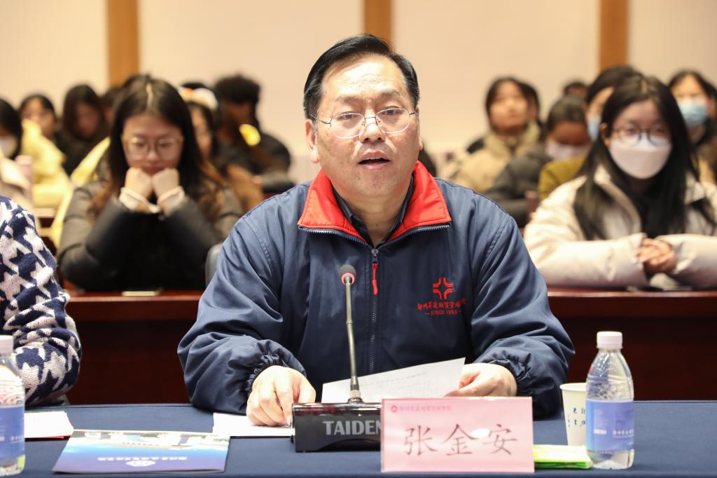 会议上,张金安首先致欢迎辞。他代表学校对茵咏副校长一行的到来表示热烈欢迎。接着,他对我校近年来的发展历程、文化特色、学科专业、人才培养等情况作了简要介绍。他表示,希望未来双方进一步加强交流合作,相互学习借鉴,共同推动赴泰汉语教师实习、交流生、联合培养硕士、教师访问学者等项目的开展。