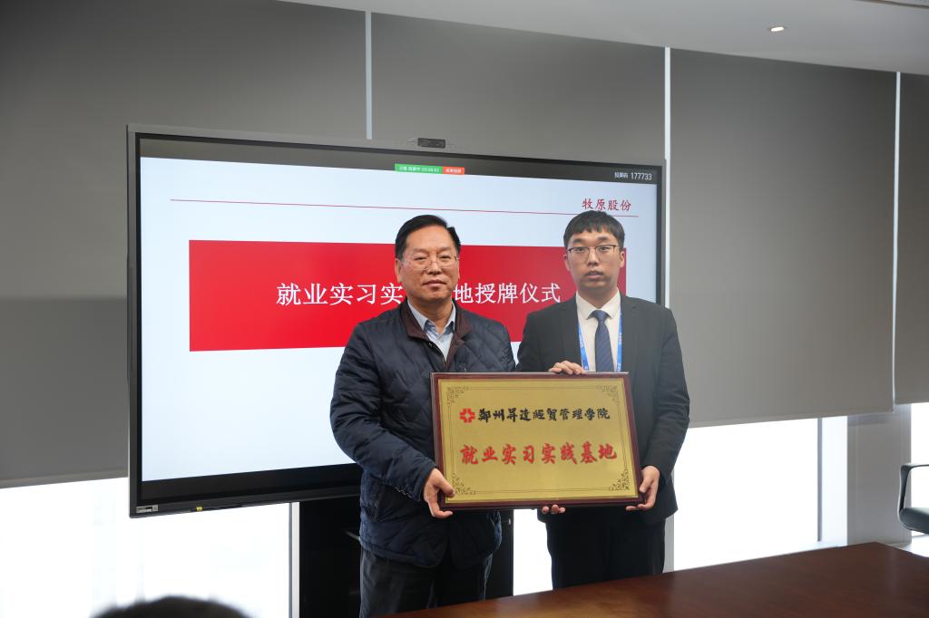 冯科、职正路、郭峰分别从学校和学院层面介绍了访企拓岗、校园招聘、就业指导、人才培养等方面的开展情况,并对牧原集团与我校多年来的合作以及为各届毕业生提供就业岗位表达感谢,并表示牧原集团是我校专业就业市场的重要人才招聘单位,也是我校就业工作的特色单位,学校会根据企业发展情况深入推进校企合作,持续提升人才精准匹配能力,向社会精准输送高质量人才。