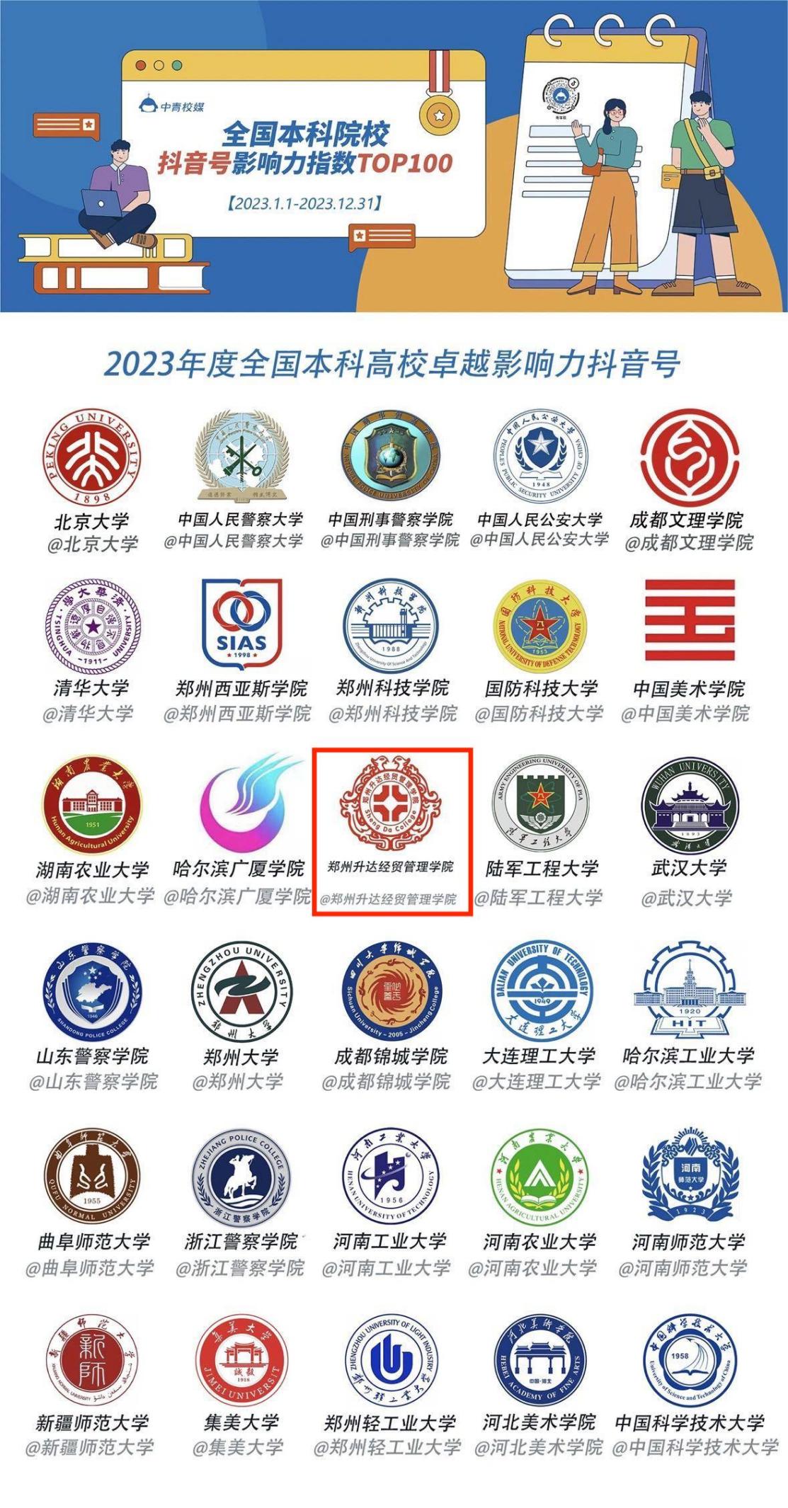 会议现场揭晓了2023年度全国本科高校卓越影响力抖音号名单。我校抖音号影响力指数全国排名第13名,获评“2023年度全国本科高校卓越影响力抖音号”。