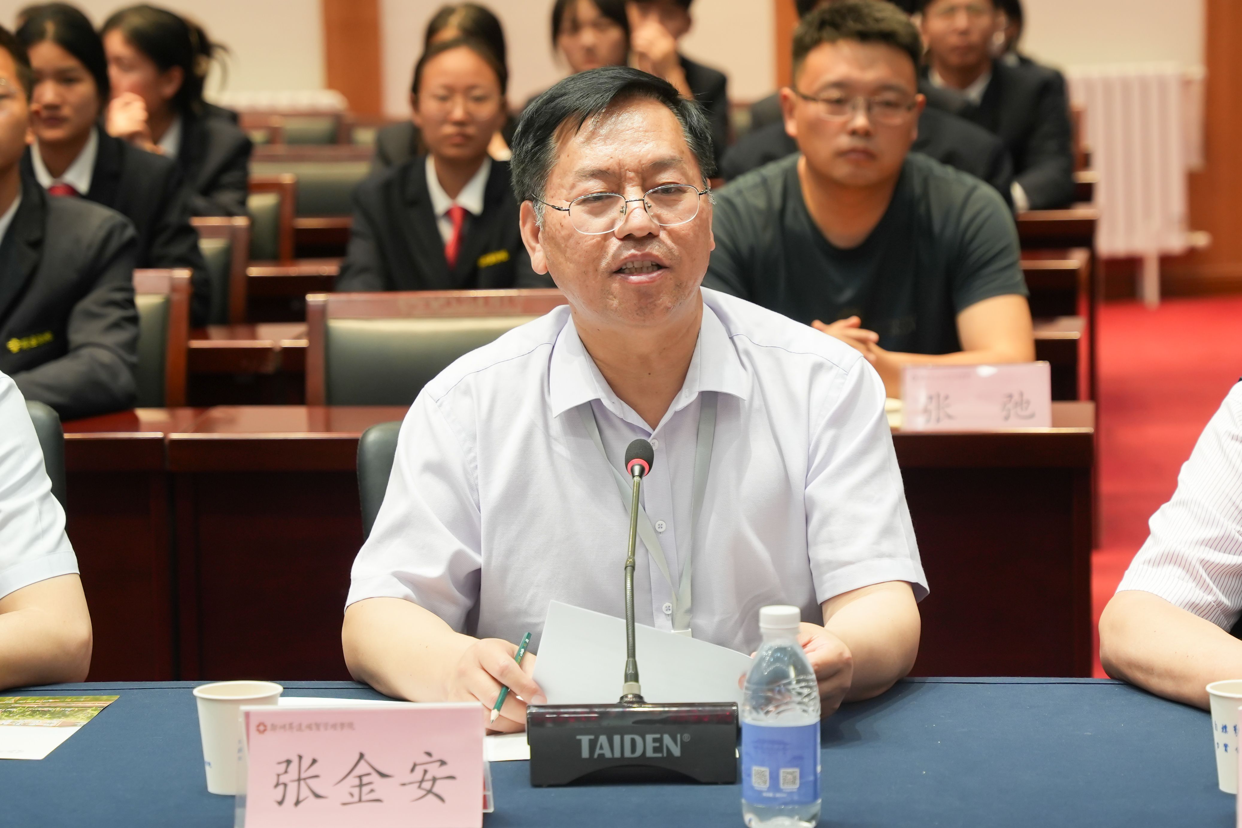 张金安就学校基本情况、文化特色、学科专业、人才培养、校企合作、学生就业、合作办学等情况作了详细介绍。他表示,升达建校31年所取得的成绩离不开教育部、河南省教育厅和广大兄弟院校的支持与帮助,并希望领导和专家能够常来升达指导工作。