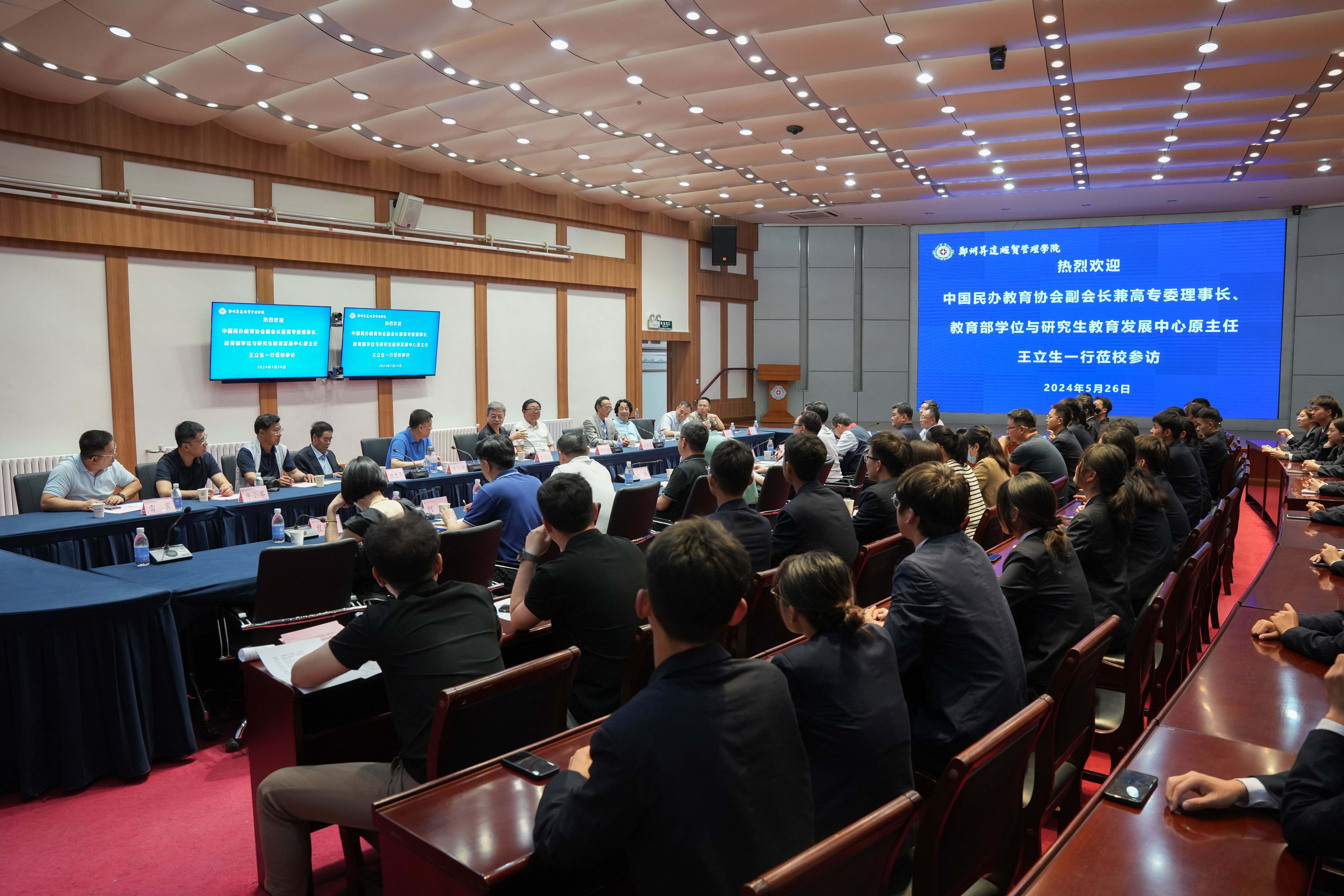 5月26日上午,中国民办教育协会副会长兼高专委理事长、教育部学位与研究生教育发展中心原主任王立生一行莅临我校参访交流。我校董事长王新奇博士,河南省教育厅原巡视员、河南省民办教育协会会长任锋,校党委副书记、副校长张金安以及董事会办公室、总务处、发展规划处、科研处、学科建设办公室(申硕办)、教学质量监测与评估中心、金融贸易学院、会计学院、外国语学院等相关部门主管及师生代表参加座谈会,座谈会由张金安主持。