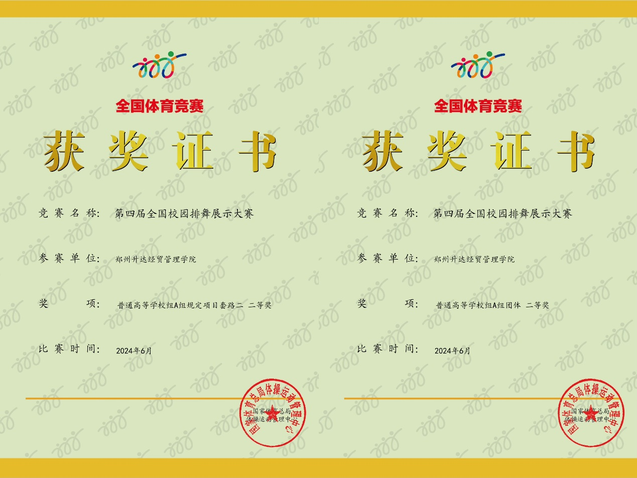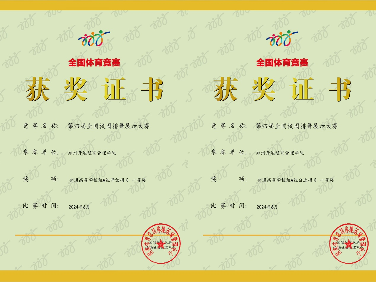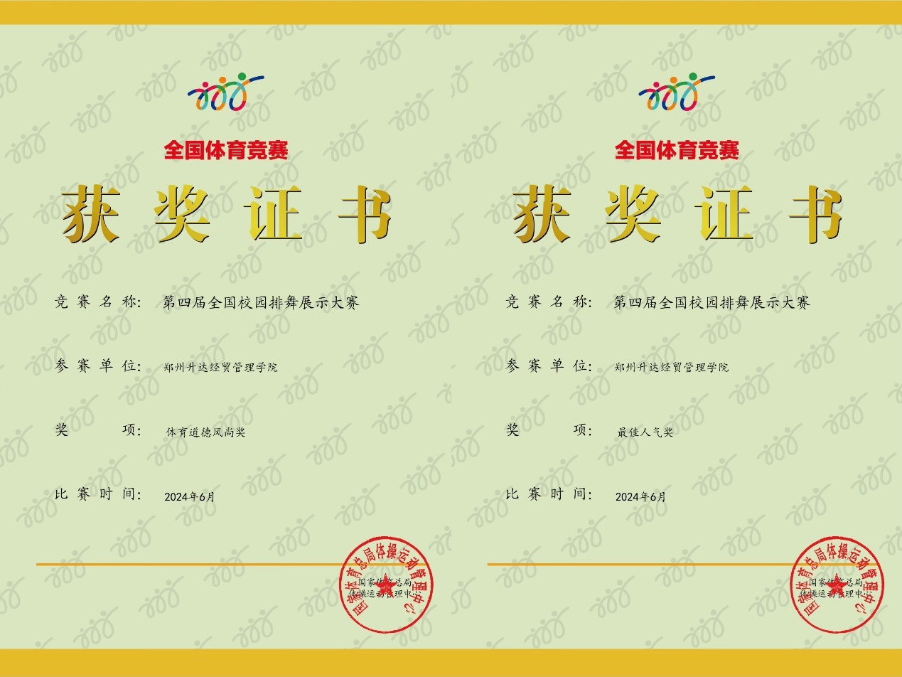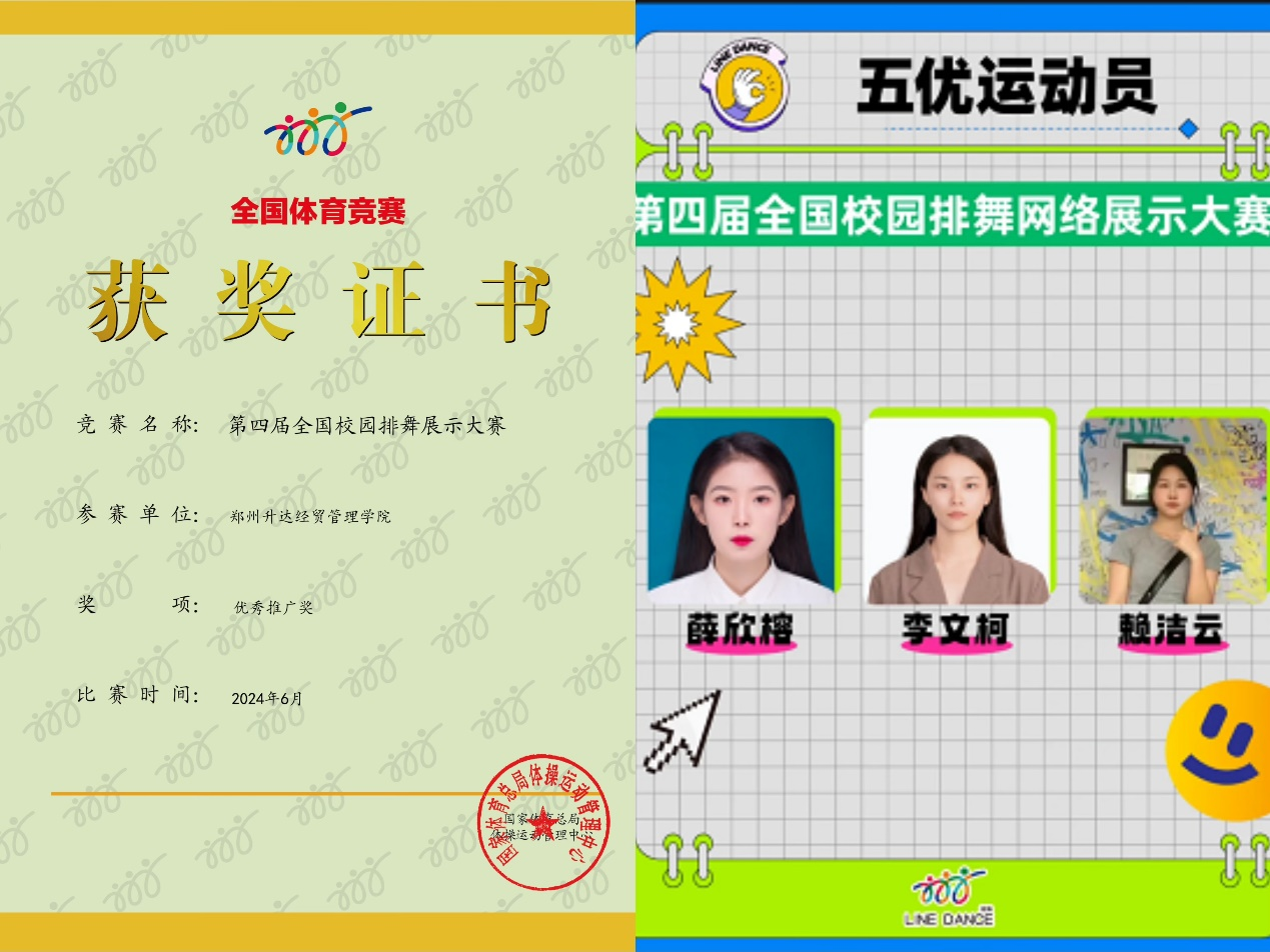 在刚刚闭幕的2024年第四届全国校园排舞展示大赛中,我校排舞代表队以卓越的竞技水平和团队协作荣获一等奖2项、二等奖2项和体育道德风尚奖等共8项奖项。其中,在高校组B组的自选项目和开放项目中,我校均摘得一等奖桂冠;在规定项目和团体项目中,我校获得两项二等奖。同时,我校排舞队以良好的精神风貌荣获“体育道德风尚奖”和“最佳人气奖”,我校因推动排舞运动良好发展获得“优秀推广奖”。队员李文珂凭借其在比赛中的优异表现和全面能力,荣获“五优运动员”荣誉称号。