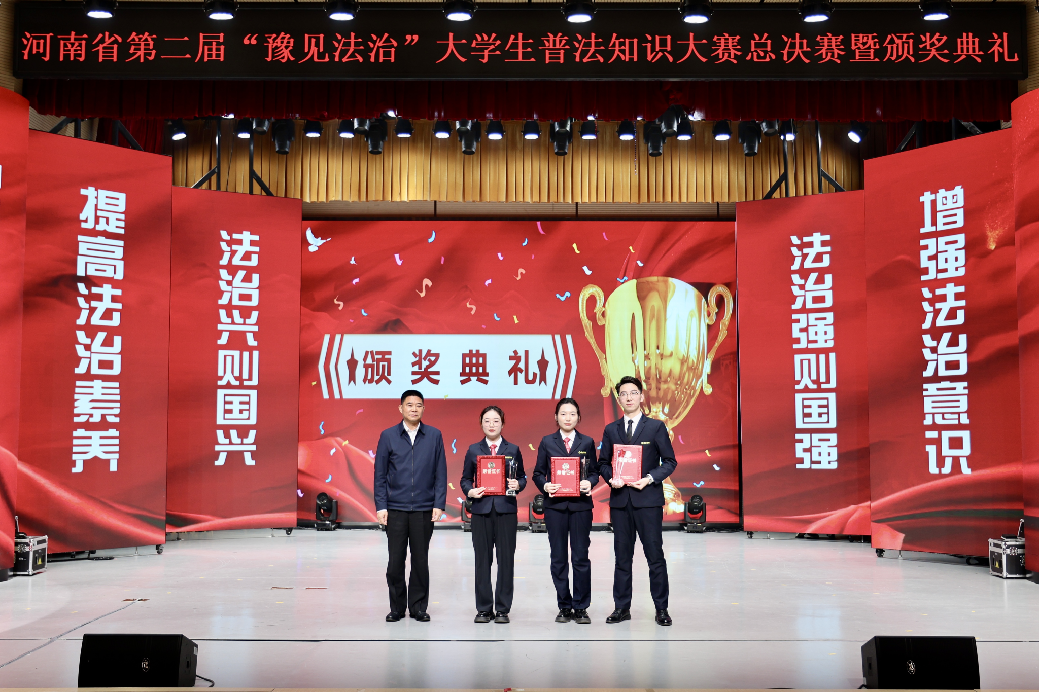 为深入学习贯彻习近平法治思想,大力弘扬宪法精神,促进平安校园建设,增强大学生环保法治意识,12月4日,由河南省高级人民法院、郑州铁路运输中级人民法院、河南法治报、顶端新闻主办的河南省第二届“豫见法治”大学生普法知识大赛总决赛暨颁奖典礼在郑州正式举行。由我校文法学院院长、法制办主任段丰乐指导,侯培娟、刘瑞老师带队的刘美情、张雪亚、史加兴参赛团队代表我校参赛。参赛团队经过“初露锋芒”“抢先出击”“终极较量”三轮环节的激烈角逐,最终不负众望荣获一等奖,侯培娟、刘瑞老师荣获优秀指导老师称号,我校荣获优秀组织奖。