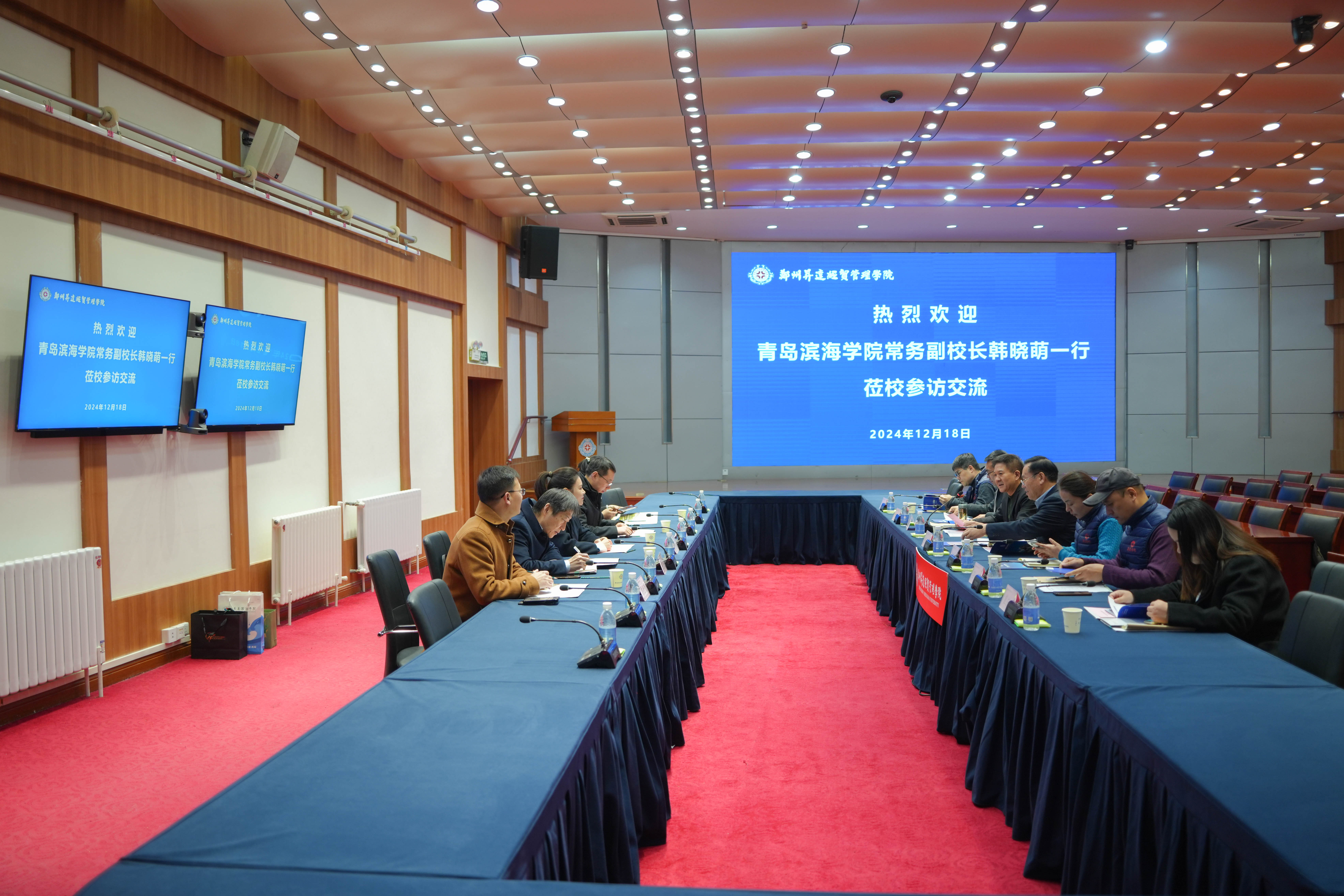 12月18日,青岛滨海学院常务副校长韩晓萌一行莅临我校参访交流。双方在国际会议厅举行座谈会,我校副校长张金安、学务长张红阳、教务处副处长赵悦然、商学院院长白鹏飞等部门负责人参加座谈会。座谈会由张红阳主持。