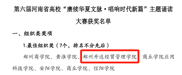 近日,由河南省教育厅高等教育处、河南省高校图书情报工作委员会、“学习强国”河南学习平台主办的第六届河南省高校“赓续华夏文脉·唱响时代新篇”主题诵读大赛获奖名单公布,我校在本次大赛中荣获多项奖项。