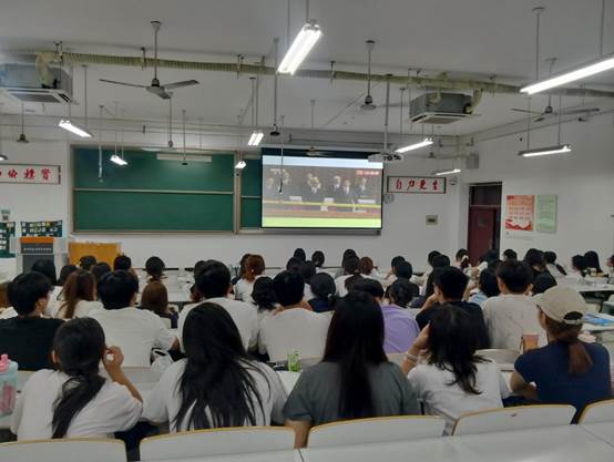 9月3日上午,纪念中国人民抗日战争暨世界反法西斯战争胜利80周年大会在北京天安门广场盛大举行。中共中央总书记、国家主席、中央军委主席习近平发表重要讲话并检阅部队。我校组织师生通过多种形式收听收看大会直播盛况,共同见证这一具有重大历史意义的庄严时刻。