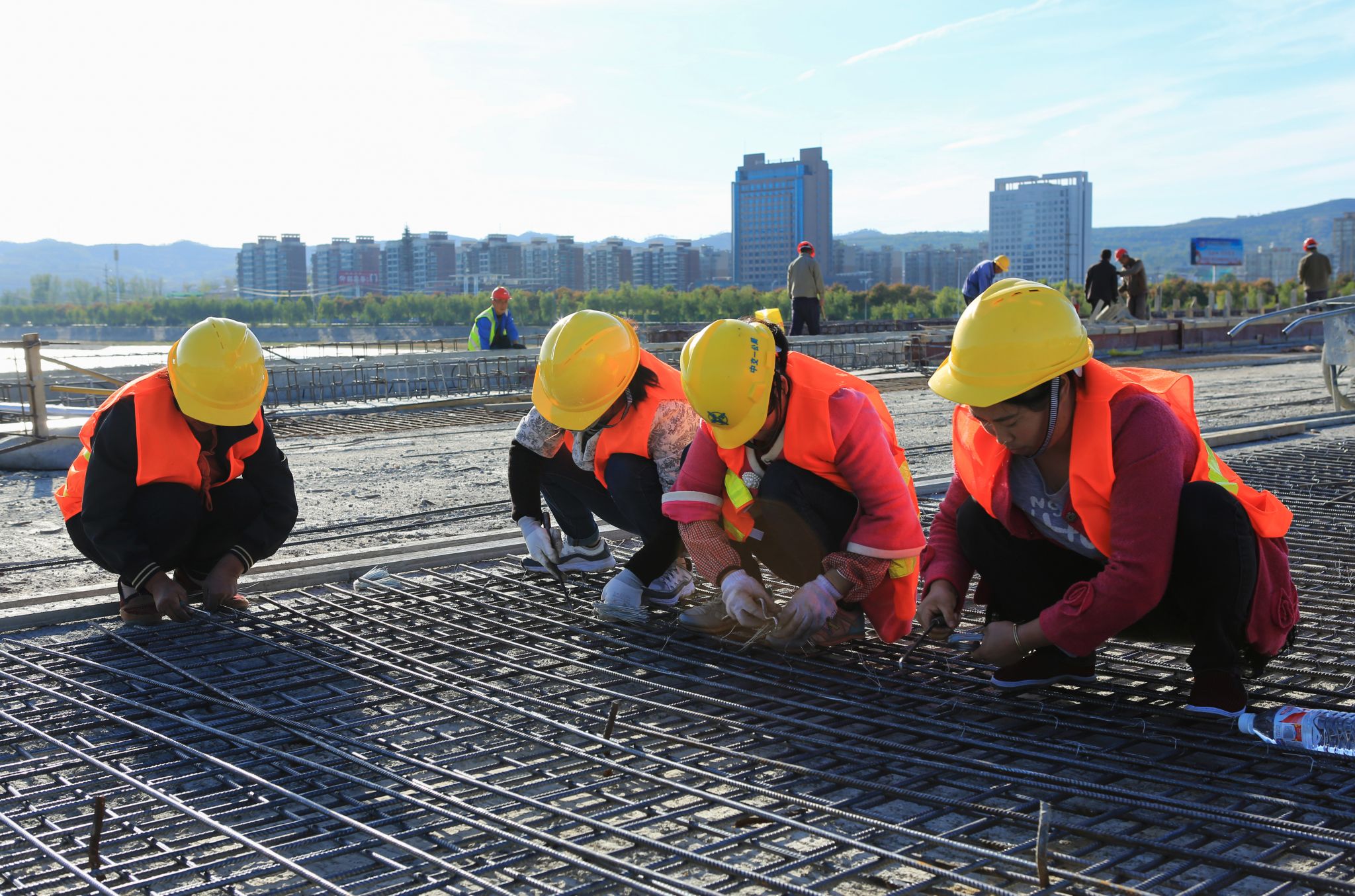 冯浩老师的《(组图)桥•筑》(三等奖)以卢氏县洛河大桥建设现场为背景,用镜头聚焦一线建设者在钢筋焊接、捆扎等环节中辛勤劳作的动感瞬间。飞溅的焊花、弯腰操作的坚韧身影,真实呈现了新时代建设者的敬业风貌与拼搏精神,礼赞了他们在国家基础建设中用双手书写的伟大篇章和不朽贡献。