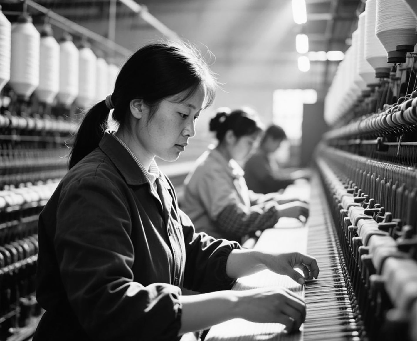 王瑞雪老师的《(组图)豫工韵·影守初心》(一等奖)以震撼人心的黑白影像,聚焦河南纺织女工、田间农民、城市建筑工人、制陶工匠、高压电维修工、车间工人等各行业普通劳动者。作品捕捉了他们专注操作、辛勤劳作、挥汗如雨、全神贯注的瞬间,以汗水浇灌梦想的质朴画面,生动诠释了初心不改、匠心永存的深刻内涵,成为河南工运百年光辉历程的缩影和劳动者平凡而伟大的赞歌。