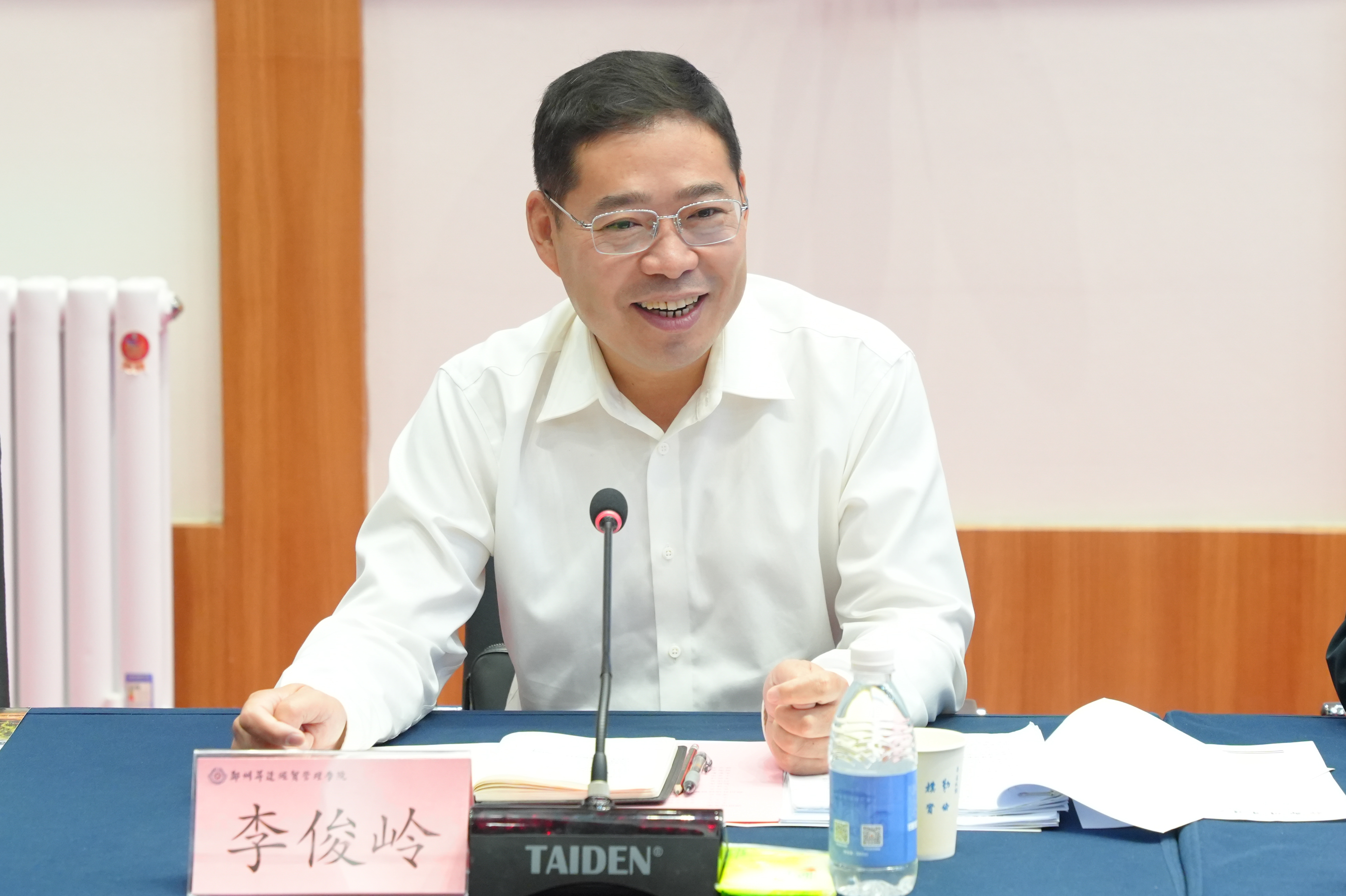 李俊岭局长在听取汇报后发表讲话,对学校在大数据相关学科建设、人才培养和信息化建设方面取得的成果表示肯定。他指出,当前河南省正处于实施“数字化转型战略”的关键阶段,大数据产业快速发展,对应用型人才培养提出了更高要求。他表示,省工业和信息化厅大数据产业发展局将继续支持学校发展,与升达建立联系机制,通过大数据产业和研究机构与学校相结合的方式,从信息化建设、产教融合、人才培养等多方面形成合力共同推动大数据产业,为河南省高质量发展作出贡献。