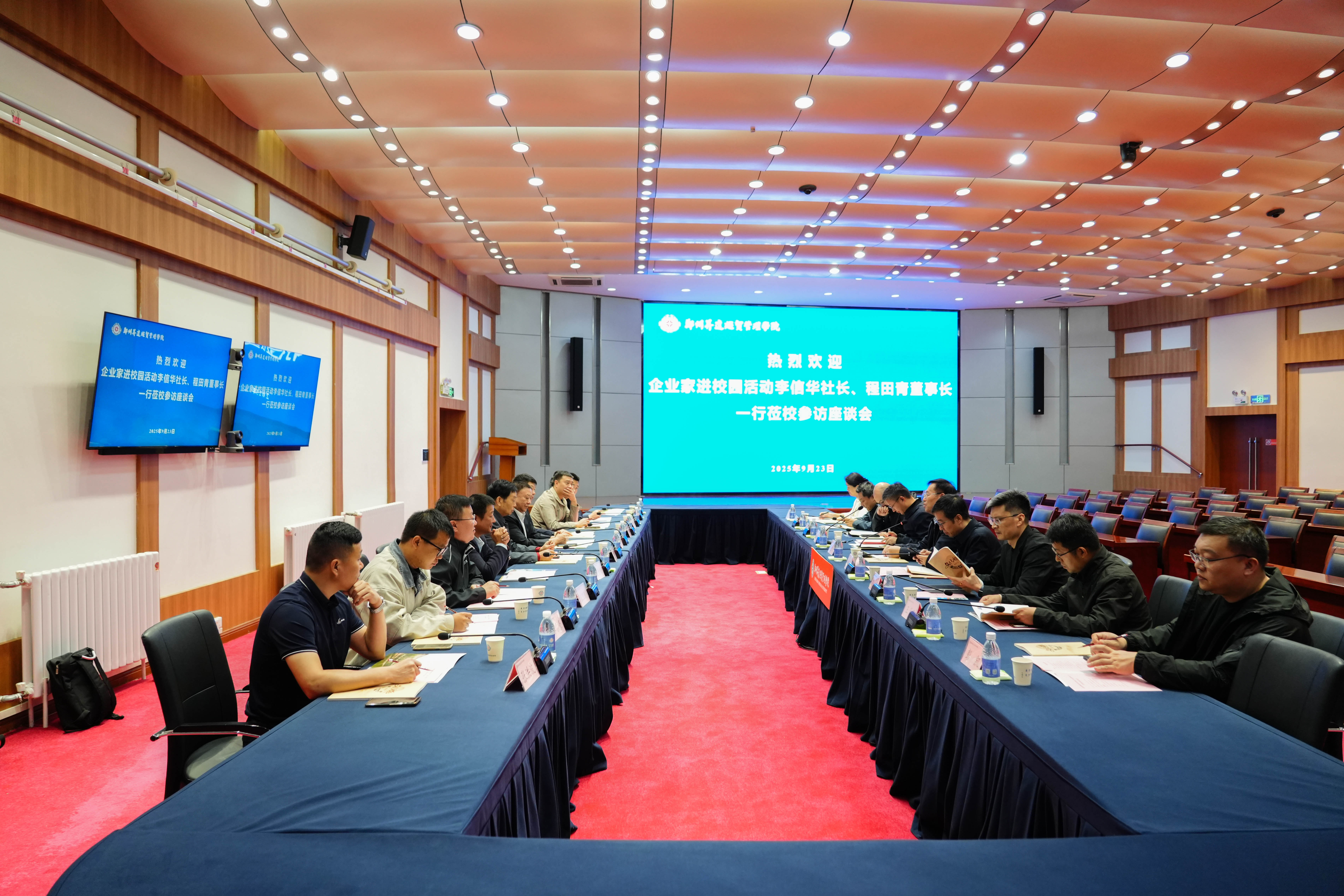 为聚集企业界英才,激发思想碰撞,进一步深化产教融合协同育人,帮助师生树立正确的创业观,用优秀企业家的故事引导在校大学生做好人生规划,9月23日下午,由《中原企业家》杂志组织策划的“企业家进大学校园演讲交流活动”座谈会在我校行政楼国际会议厅举办,专题讲座设置在双创大讲堂。