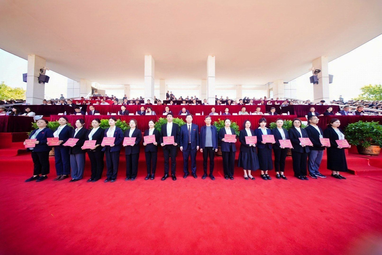 出席典礼的领导和嘉宾有:河南省民办教育协会会长、河南省教育厅原巡视员任锋,中原工学院纪委书记张爱华,河南省机关事务管理局原副局长乔建宏,河南省教育厅学生处副处长钱鹏俊,新郑市委常委、新郑市人武部上校政委杨兆鹏,新郑市龙湖镇镇长冯举涛,河南技师学院豫能产业学院副校长陈丽红,郑州市二七区委宣传部干部王书音,郑州市台资企业协会常务副会长詹丽珠、副会长林英源,丹尼斯集团副总裁周晓,金居建设发展股份公司董事长蔡奇霖,河南省政协委员、香港金路达科技有限公司董事长李二合,北京中世裕建设有限公司董事长张龙、总经理吴泽永,河南省阁源建筑有限公司董事长王喜亮、总经理王惠杰,河南盛确未合建设工程有限公司董事长李方方、总经理黄新宇,河南匠增建筑工程有限公司董事长代红建,深圳市君什投资有限公司董事长王晓杰,深圳市嵩岳智慧能源有限公司董事长陈宏,河南凌红建筑工程有限公司董事长马红彬,香港添翼慈善基金主席徐阳,郑州宏森教育集团总经理朱伟光,早点淘创始人、河南省快消品行业协会副会长赵团结。