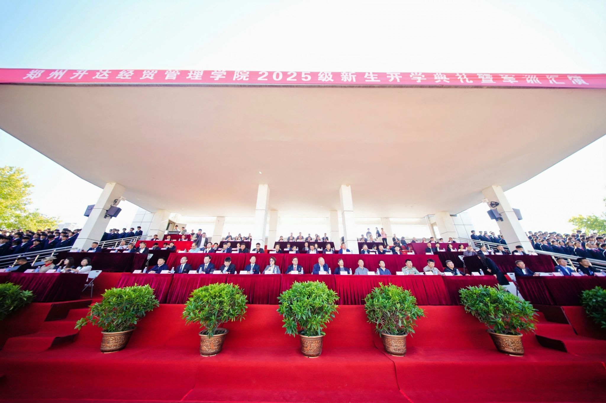 出席典礼的校领导有:董事长王新奇,校长张欣,党委副书记、副校长张金安,副校长张其武,登封校区党工委书记沈定军等校领导,学校中层干部代表、教职工代表、优秀校友代表、军训教官、全体本专科新生参加了典礼仪式。